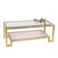Worlds Away Winston Gold Leaf Two Tier Coffee Table With Clear Beveled Glass