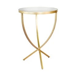 Worlds Away Round Cross Leg Side Table – Mirror Top – Gold Leaf
