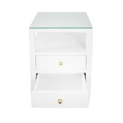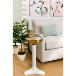 Worlds Away Round Cigar Table – Antique Brass Detail And Mirror Top – White Lacquer