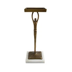 Worlds Away Sculptural Cigar Table – Antique Brass – Marble Base