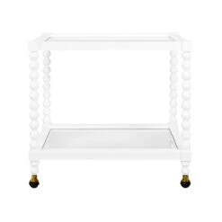 Worlds Away Cane Side Table – Matte White Lacquer Wood Frame