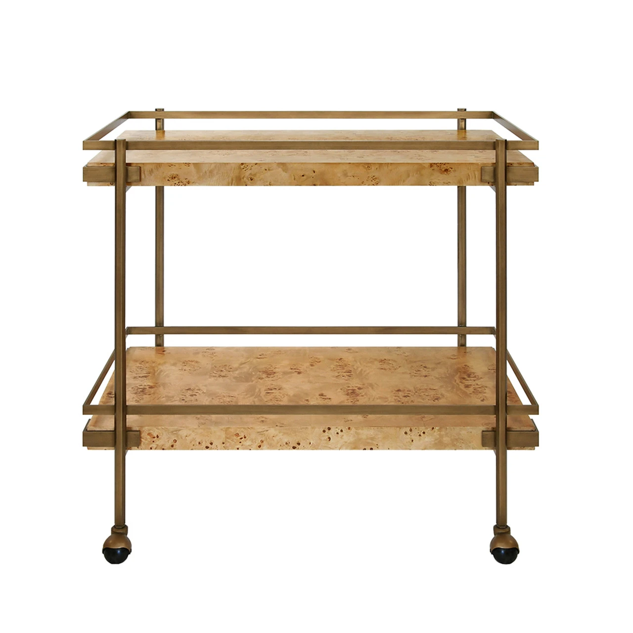 Enjoy the Antique Brass Bar Cart – Shelves – Burl Wood in your home today!
