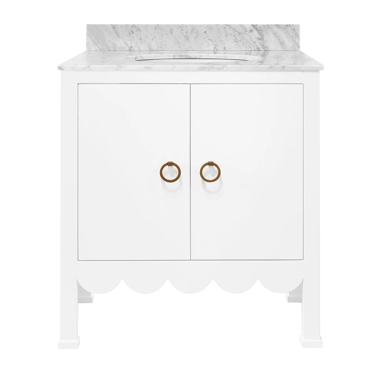 Enjoy the Bath Vanity – Scallop Detail – Matte White Lacquer – White Marble Top And Porcelain Sink in your home today!