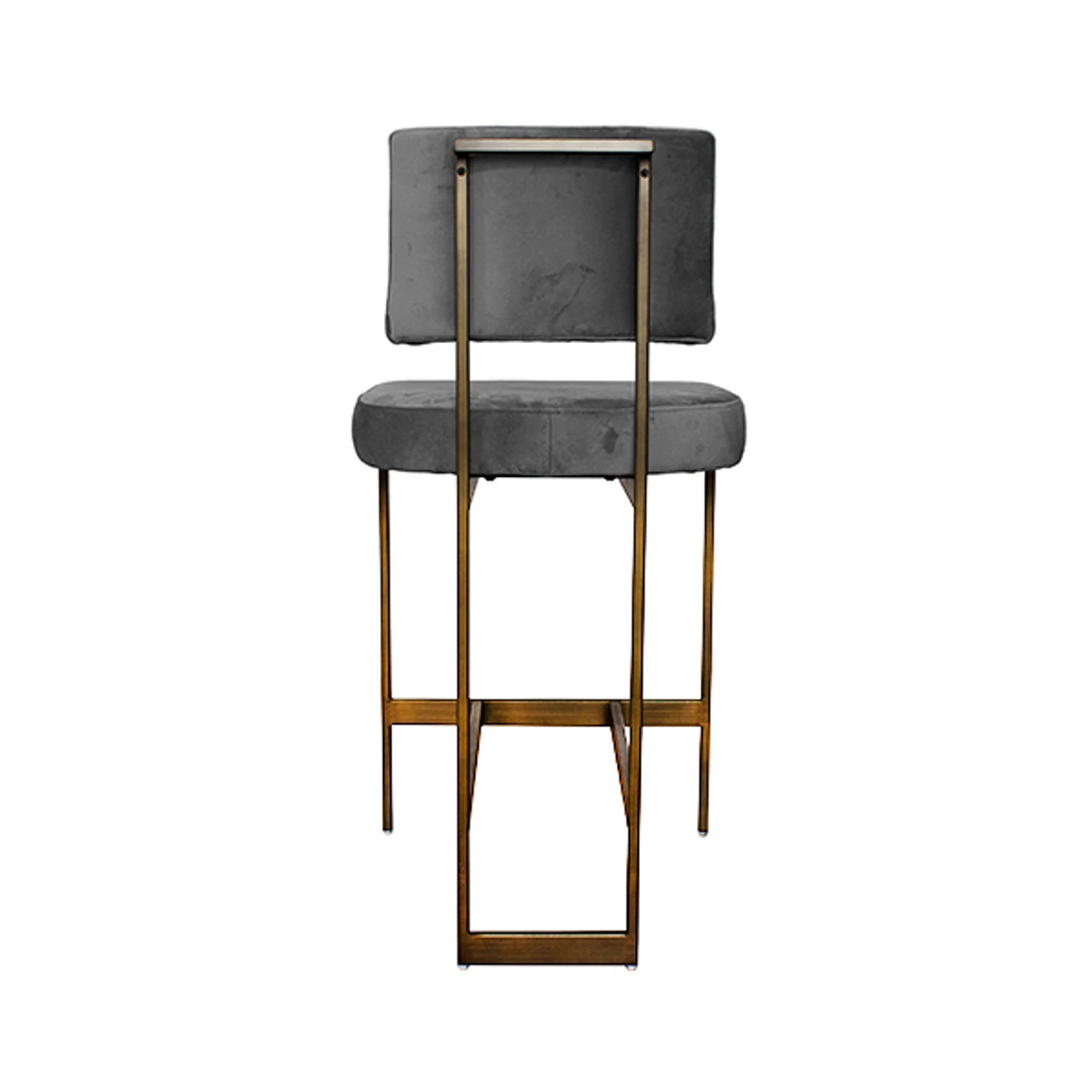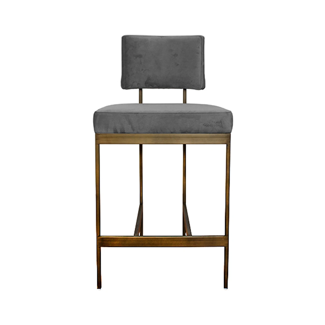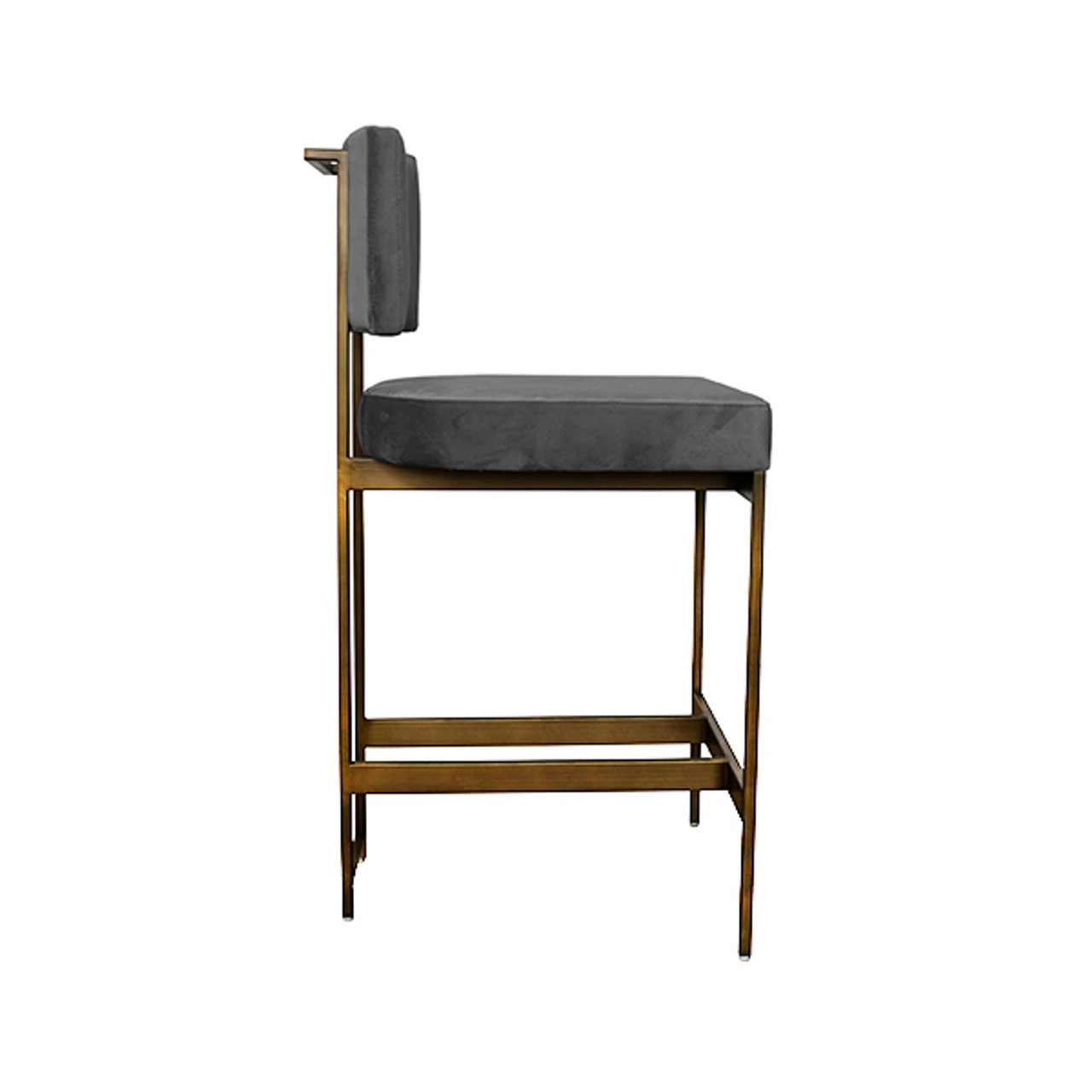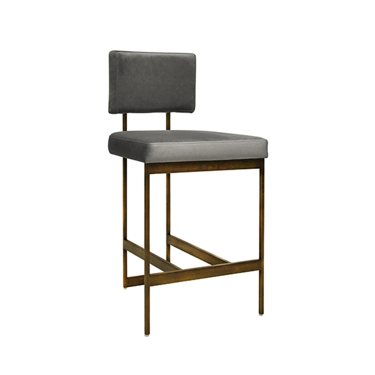 Enjoy the Modern Counter Stool – Grey Velvet Cushion – Bronze in your home today! The clean lines and simple geometry of our Baylor counter height stool are inspired by early European modernists. A luxurious grey velvet cushion pairs in elegant contrast to the painted bronze base. Sturdy back handle incorporated into the metal frame for easy portablity.