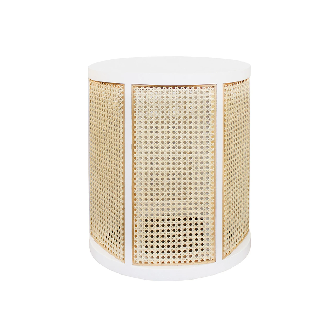 Enjoy the Cane Side Table – Matte White Lacquer Wood Frame in your home today! Natural woven cane panels sit delicately inside a durable white lacquer wood frame in the Freya side table a versatile accent piece designed to complement the style of any room.