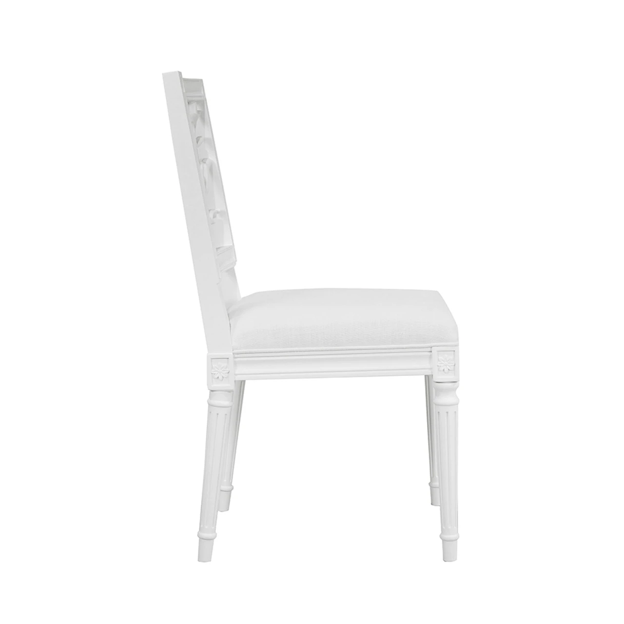 Enjoy the Coral Motif Back Dining Chair – White Linen Seat – Matte White Lacquer in your home today!