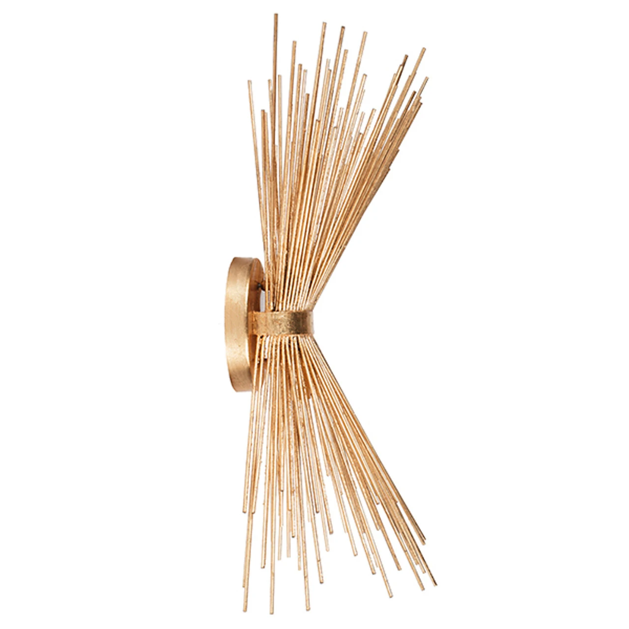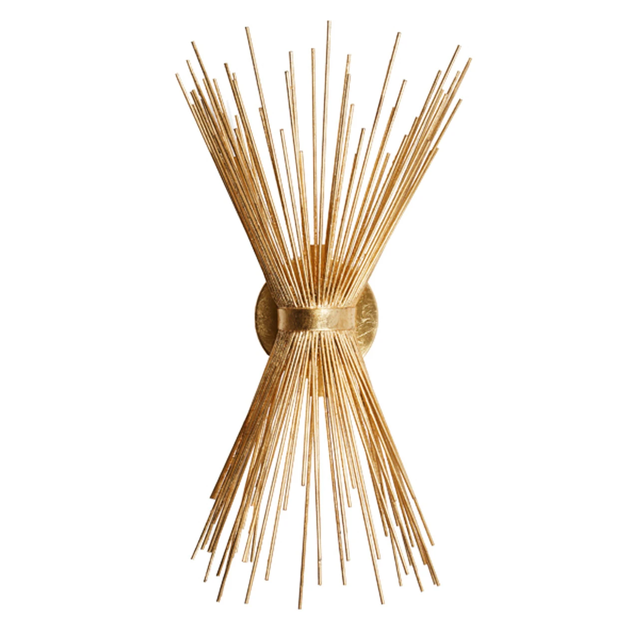Enjoy the Spray Sconce – Gold Leaf in your home today! This exquisite spray sconce delights with a theatrical blend of light and shadow. Intricate, iron spindles are artfully finished with hand-applied gold leaf. As accent lighting for your hallway or bookends for a vanity mirror, Cornell radiates warmth and sophistication.