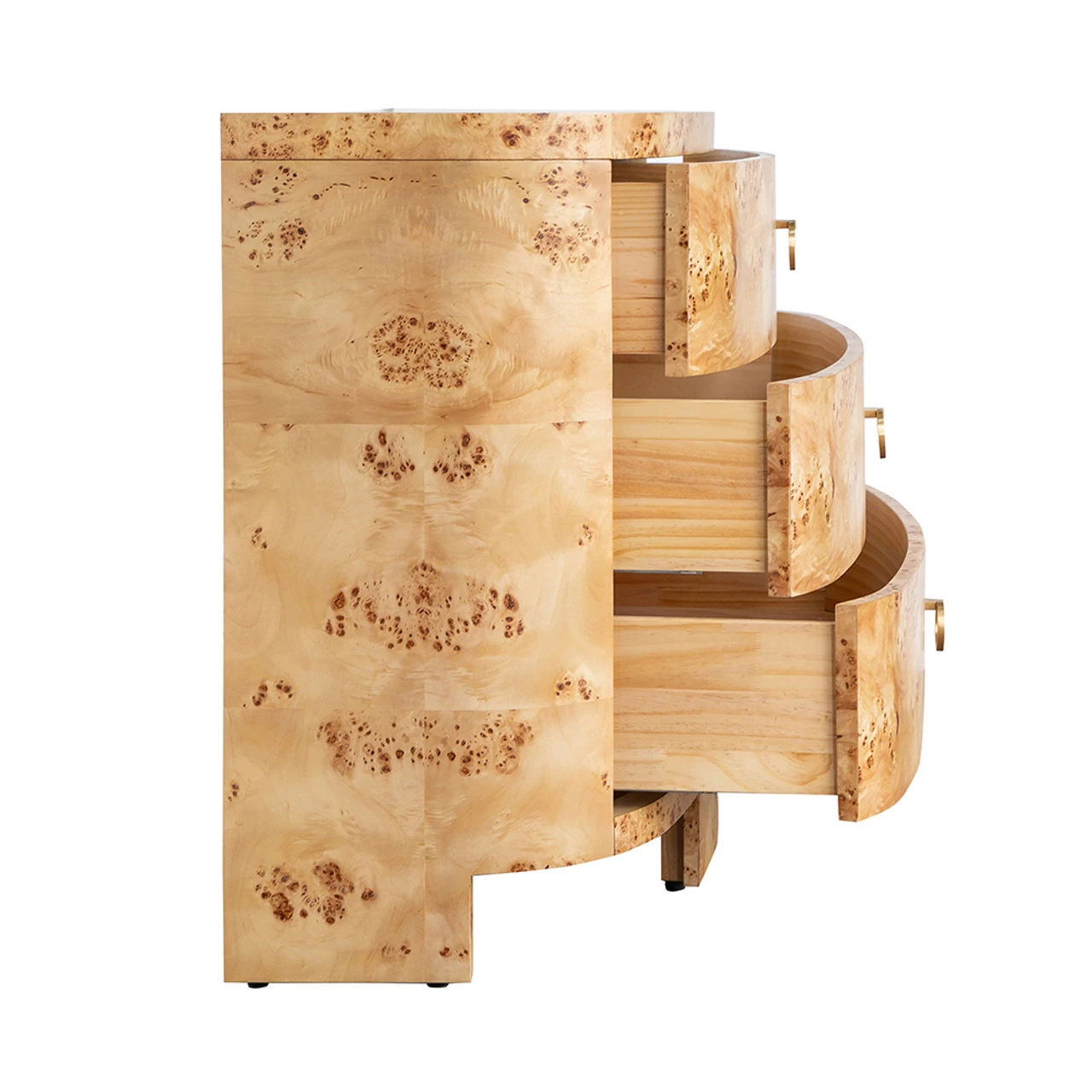 Enjoy the Demilune Chest – Three Drawers – Burl Wood in your home today!