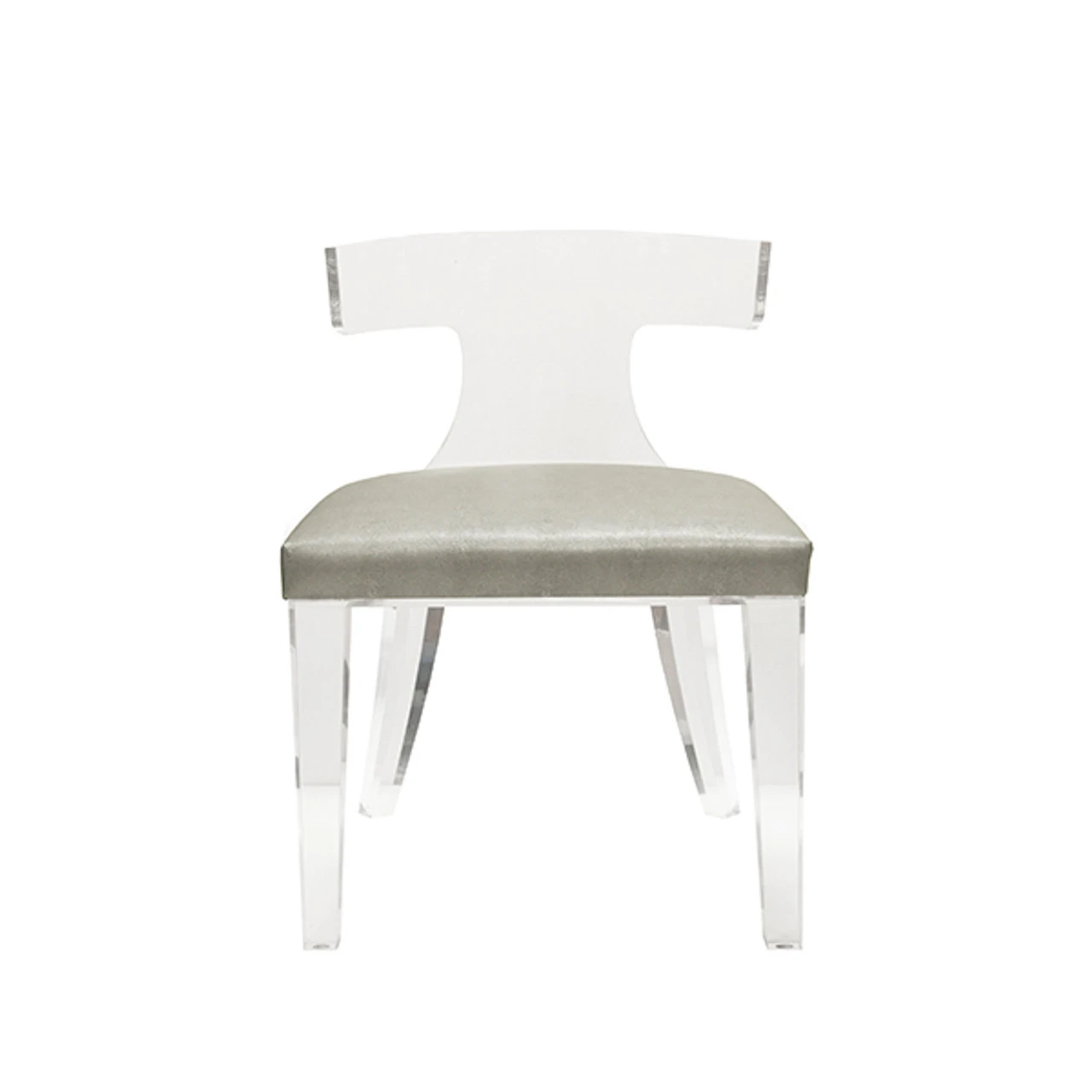 Enjoy the Acrylic Klismos Chair – Grey Shagreen Cushion in your home today! The curved back and tapered legs of our Duke chair are inspired by one of the world’s oldest and most beloved silhouettes. Our take on the classic Greek Klismos chair features a shaped acrylic base paired with an upholstered seat in dove grey faux shagreen.