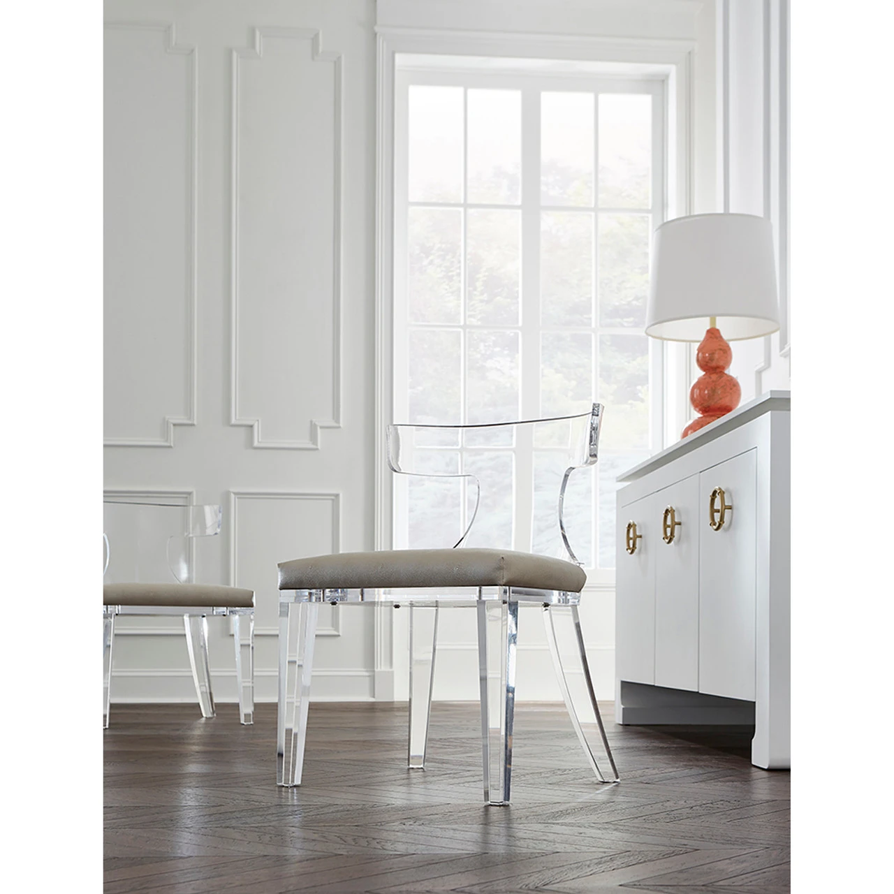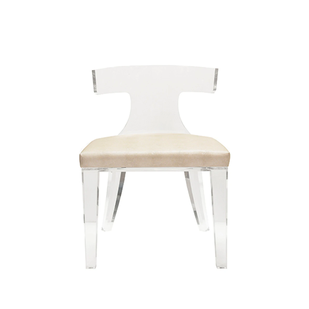 Enjoy the Acrylic Klismos Chair – Beige Shagreen Cushion in your home today! The curved back and tapered legs of our Duke chair are inspired by one of the world’s oldest and most beloved silhouettes. Our take on the classic Greek Klismos chair features a shaped acrylic base paired with an upholstered seat in cream faux shagreen.