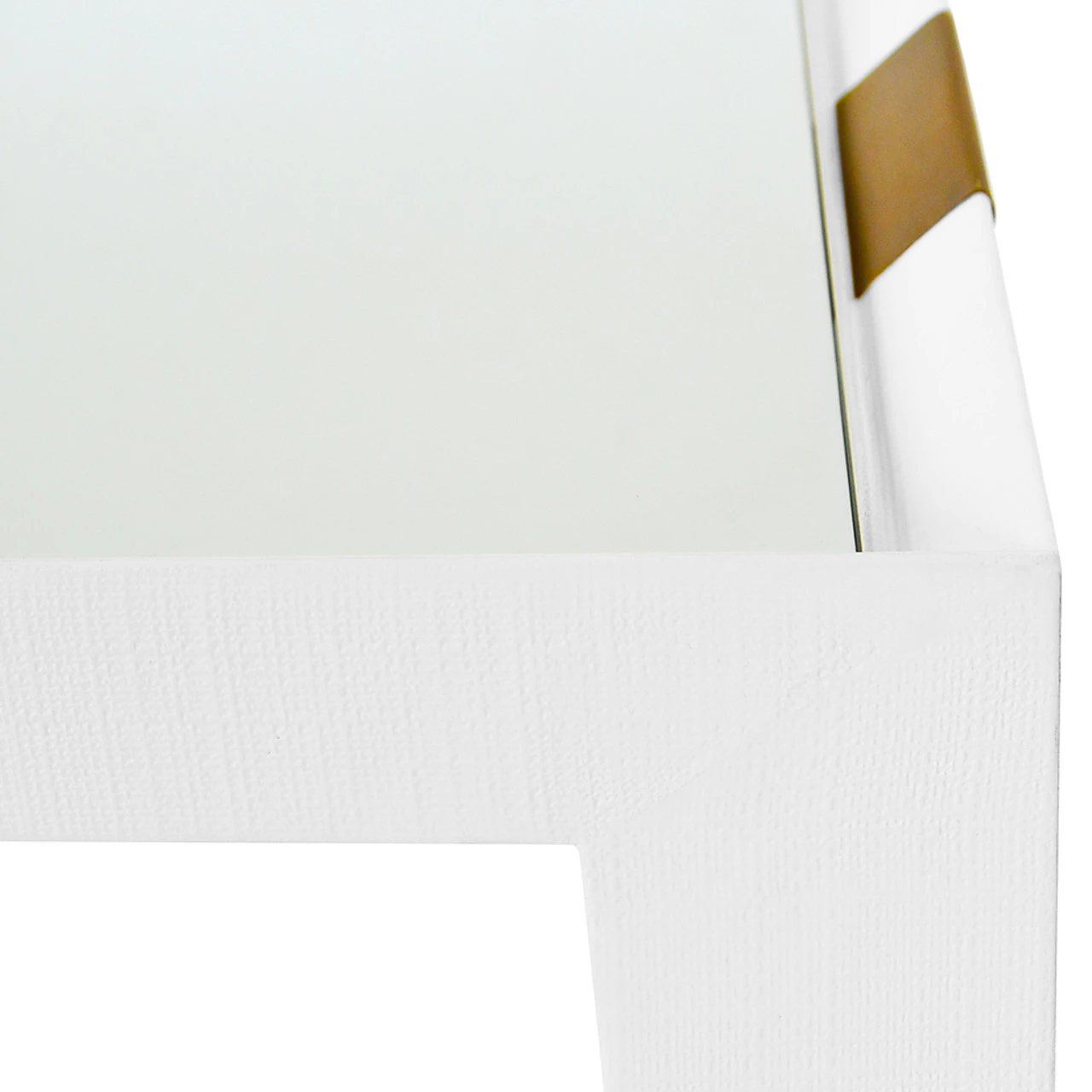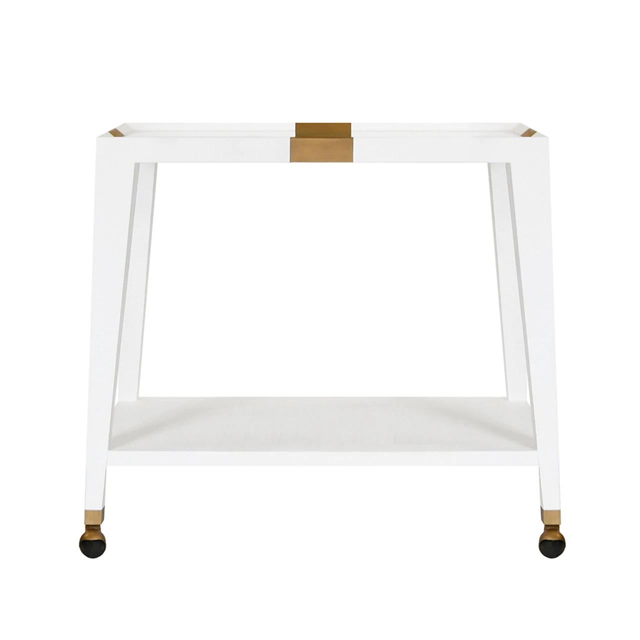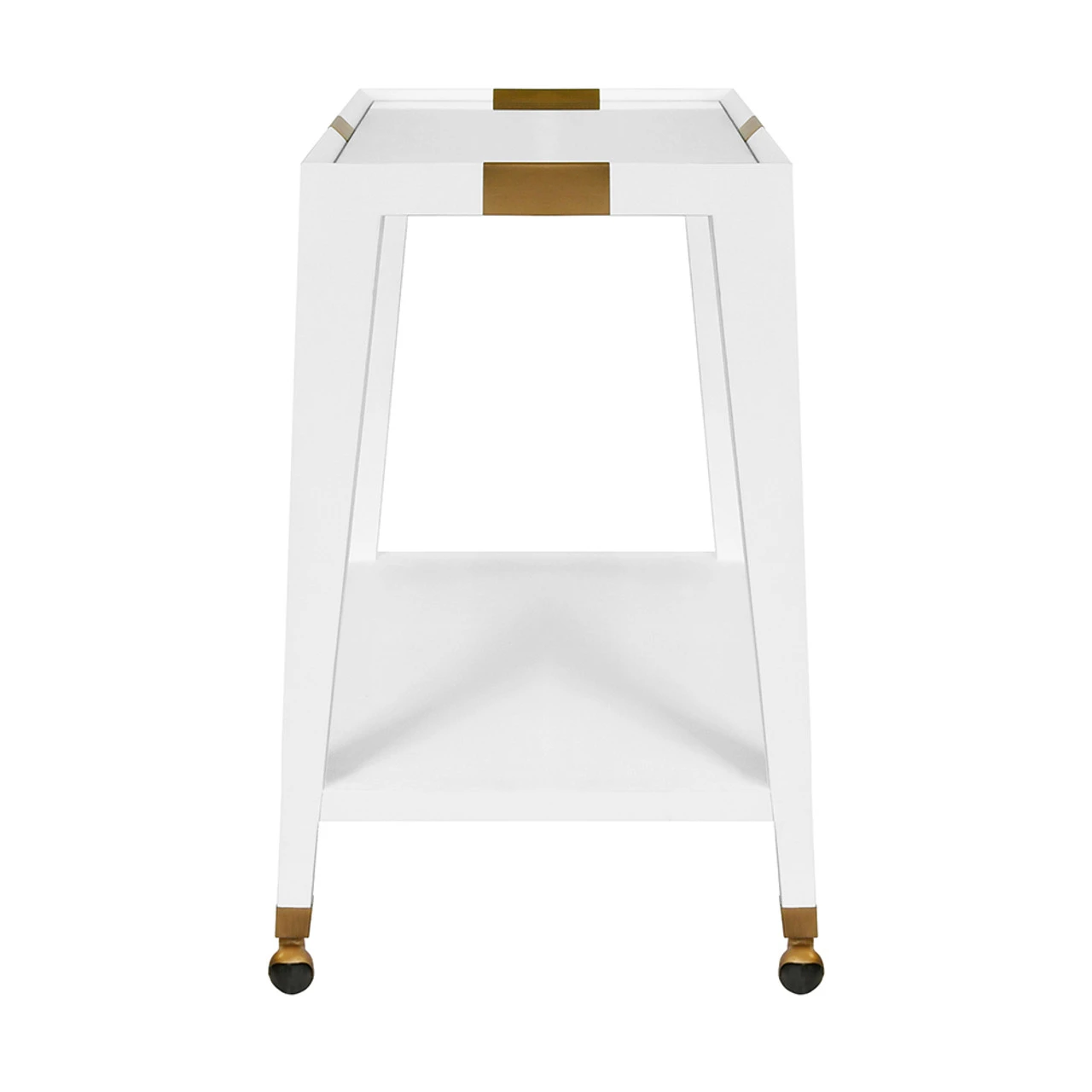 Enjoy the Flared Bar Cart – Antique Brass Detail – White Textured Linen in your home today!