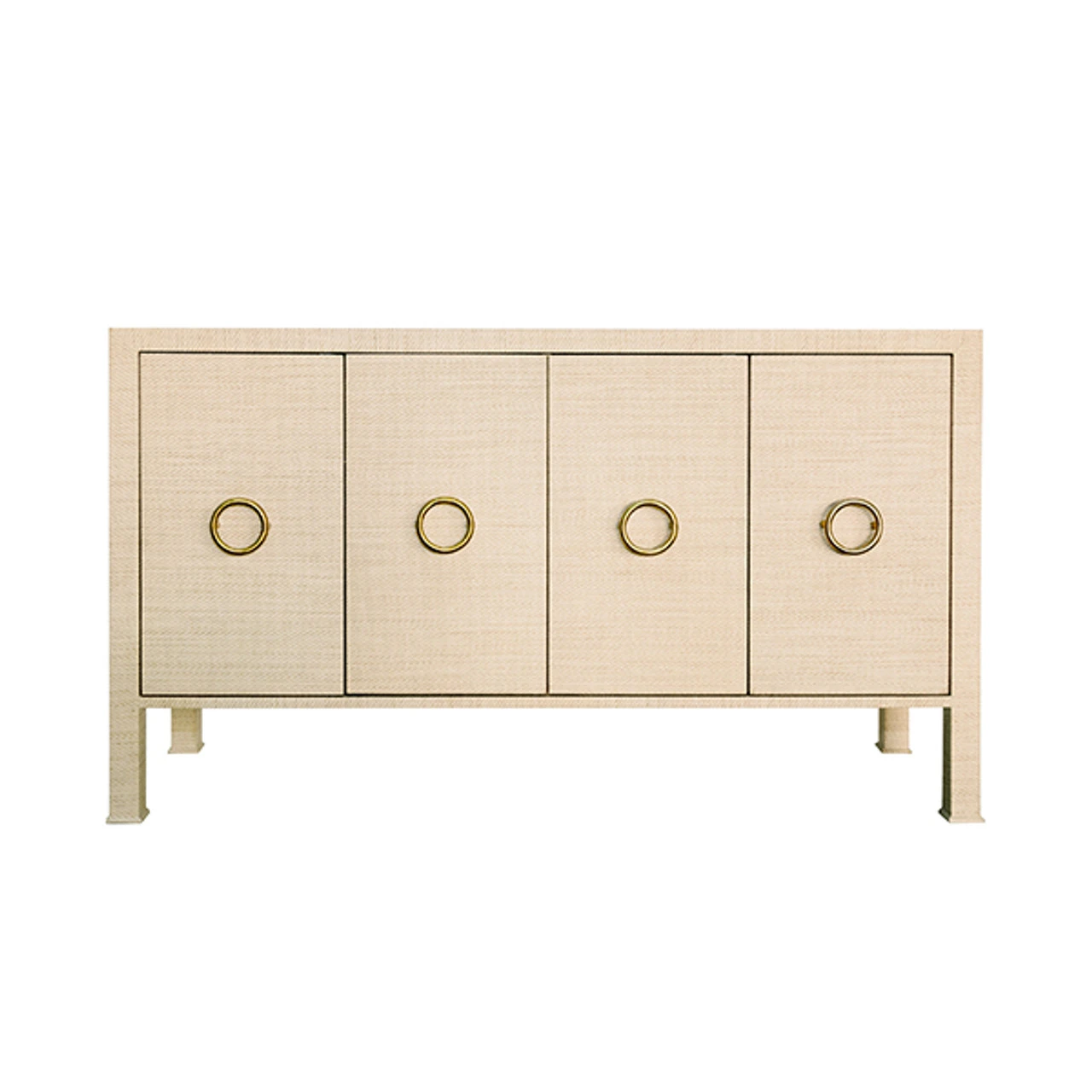 Enjoy the Four Door Buffet – Antique Brass Circle Hardware – Natural Grasscloth in your home today!