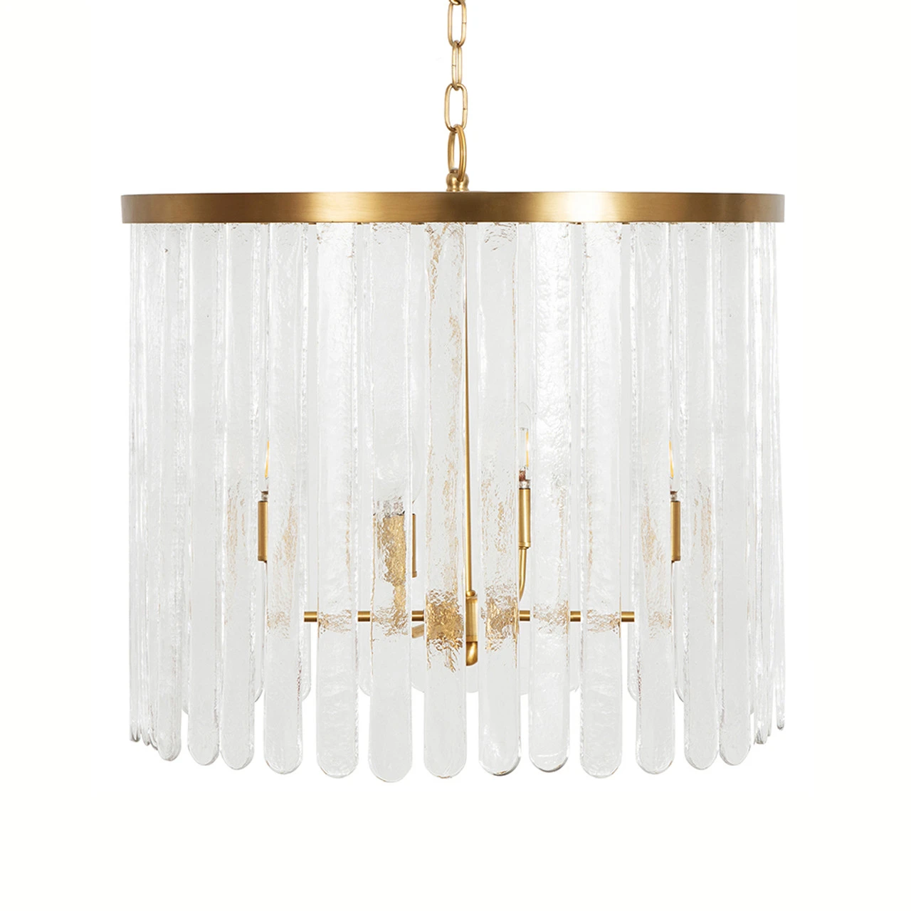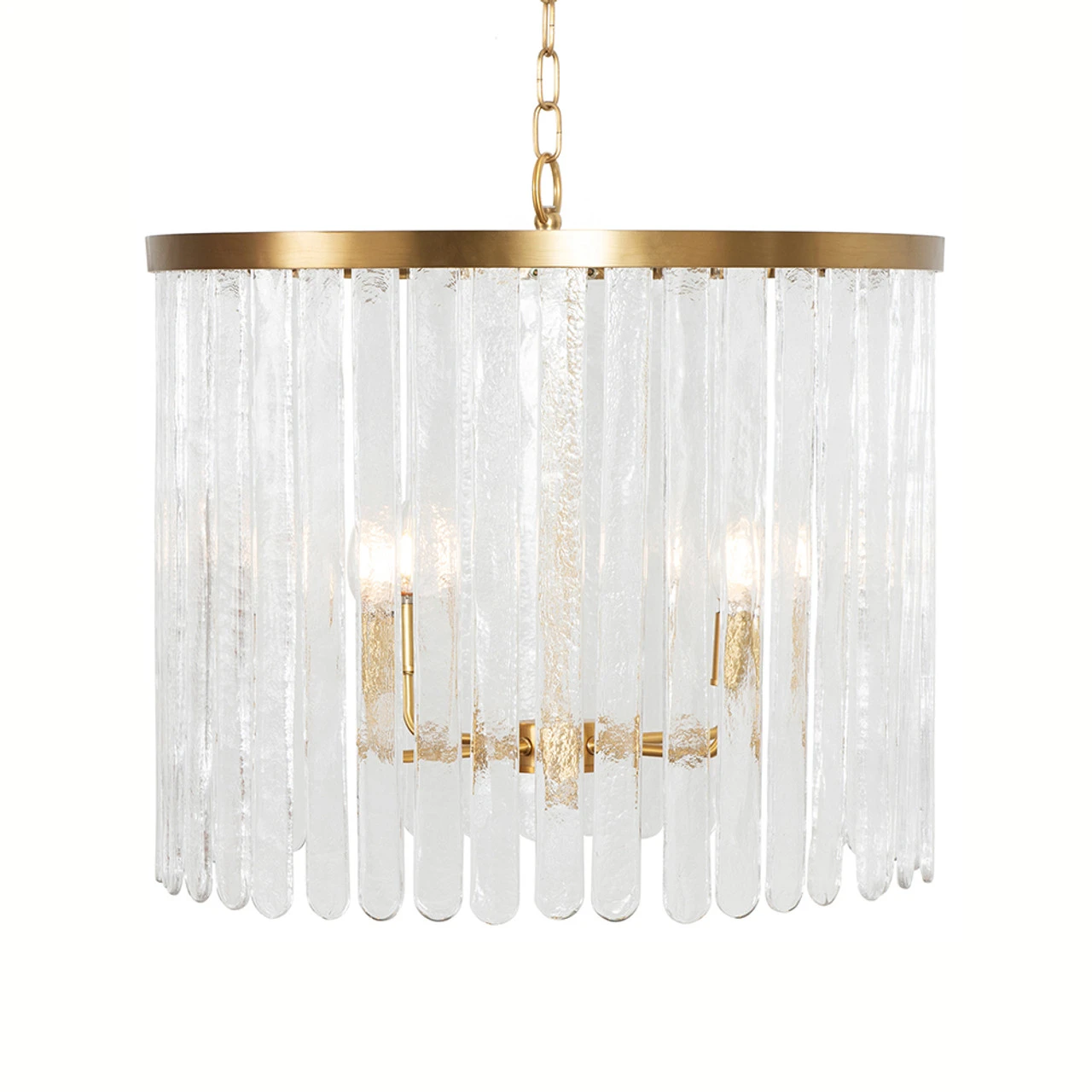 Enjoy the Four Light Hanging Textured Glass Pendant – Brushed Brass in your home today!