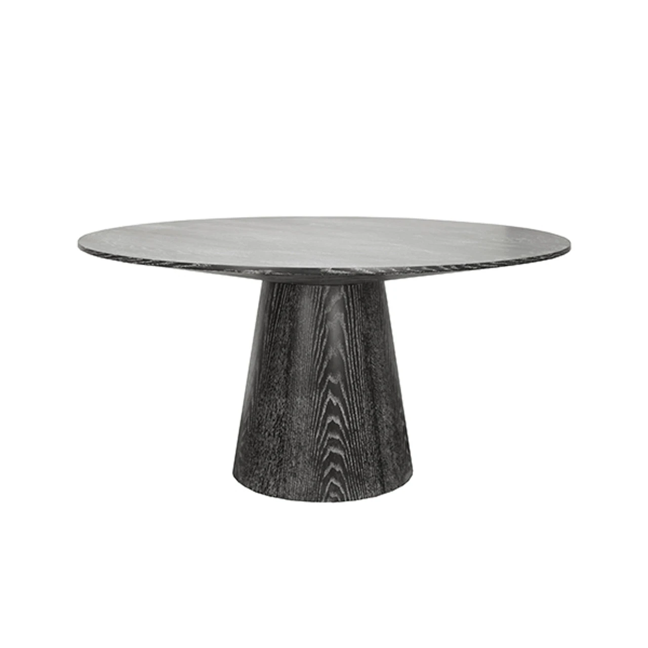 Enjoy the Round Black Cerused Oak Dining Table Base And Top in your home today! Our Hamilton round dining table makes the most of its classic, minimalist silhouette. The tapered wood base offers a handsome, solid foundation and black cerused finish accentuates beautifully textured oak grain and what a statement black makes! With a 59-inch, reverse-beveled top, the Hamilton comfortably seats six.