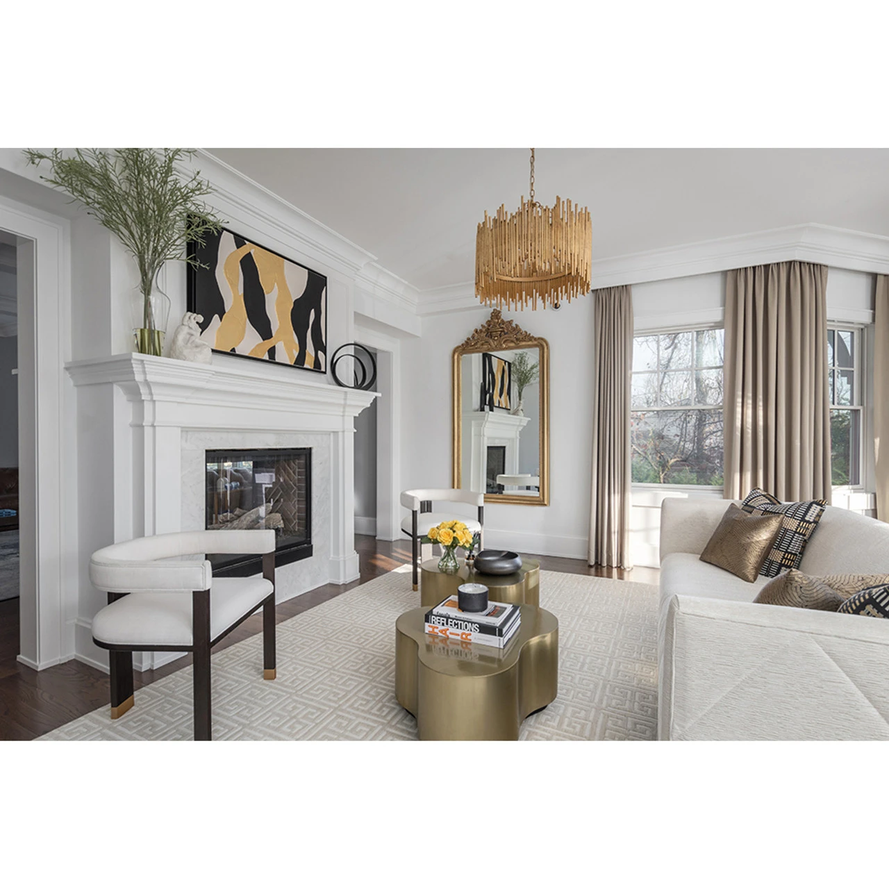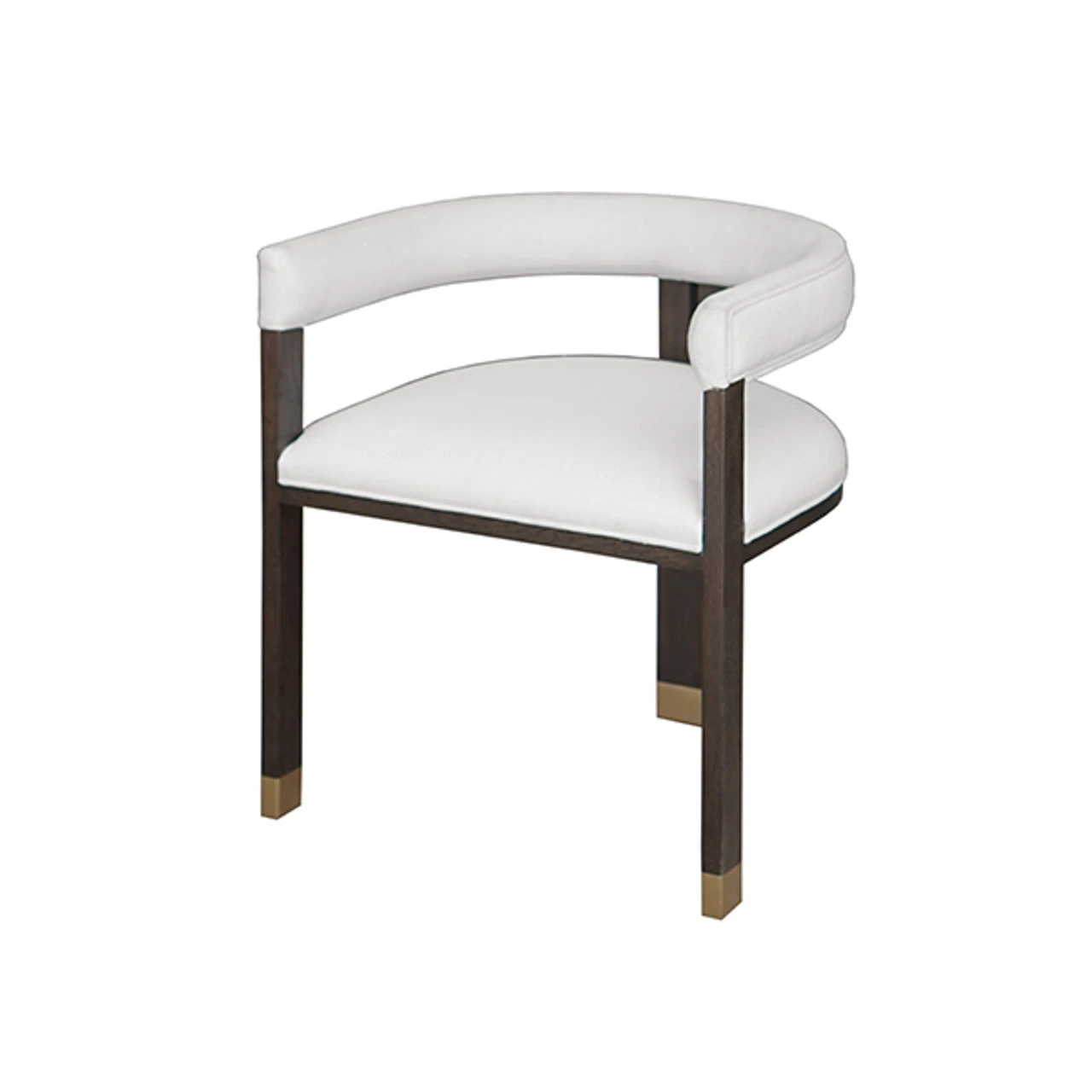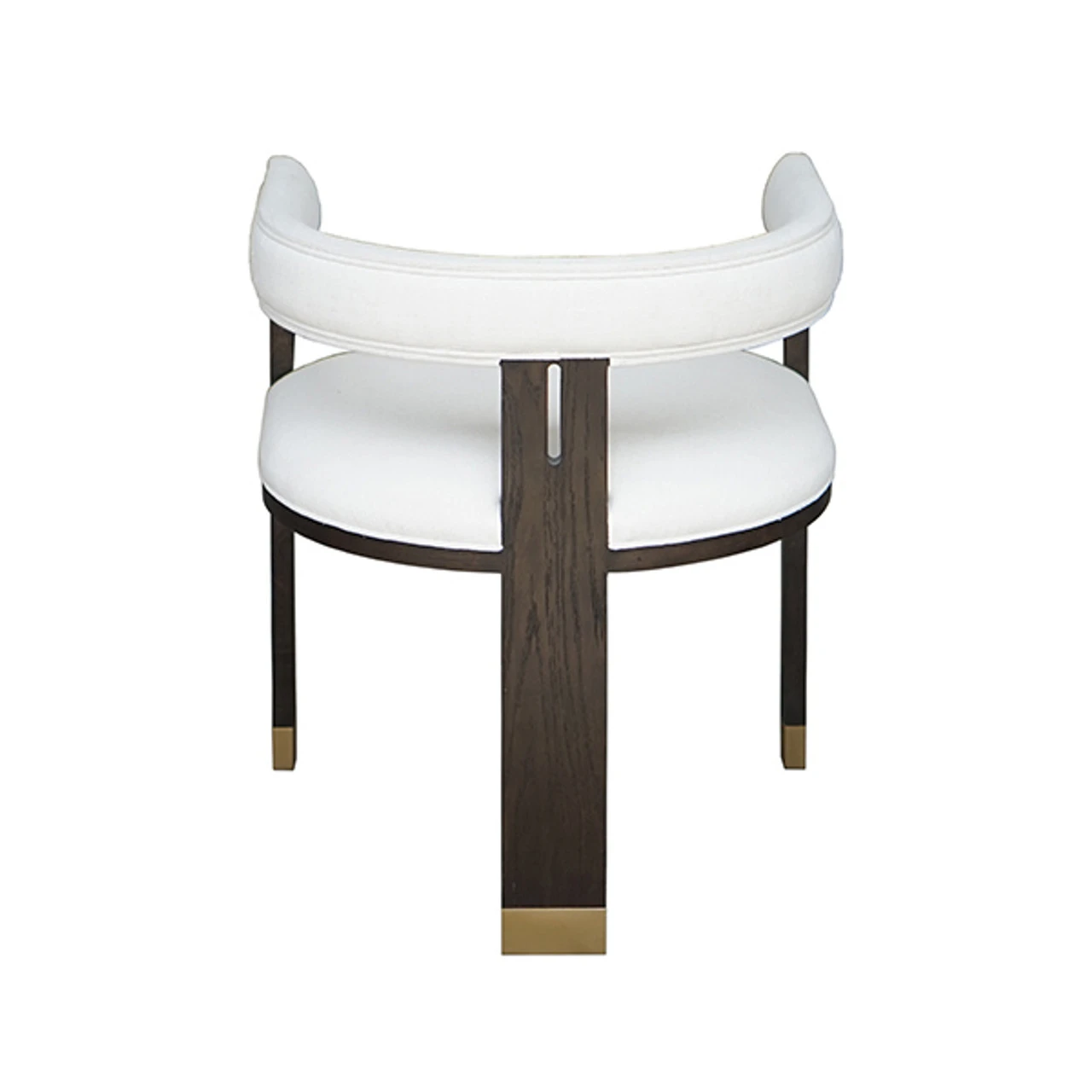 Enjoy the Modern Wooden Accent Chair – White Linen Upholstery in your home today! Perfectly tailored in crisp white linen upholstery, the Jude accent chair makes a timeless statement from every angle. A unique, tri-leg frame in a rich dark espresso oak with brass ferrule details create a highly sought-after silhouette perfect for any room. Jude looks great as a pair in your living room, or grouped around your favorite dining table for an unforgettably dramatic statement.