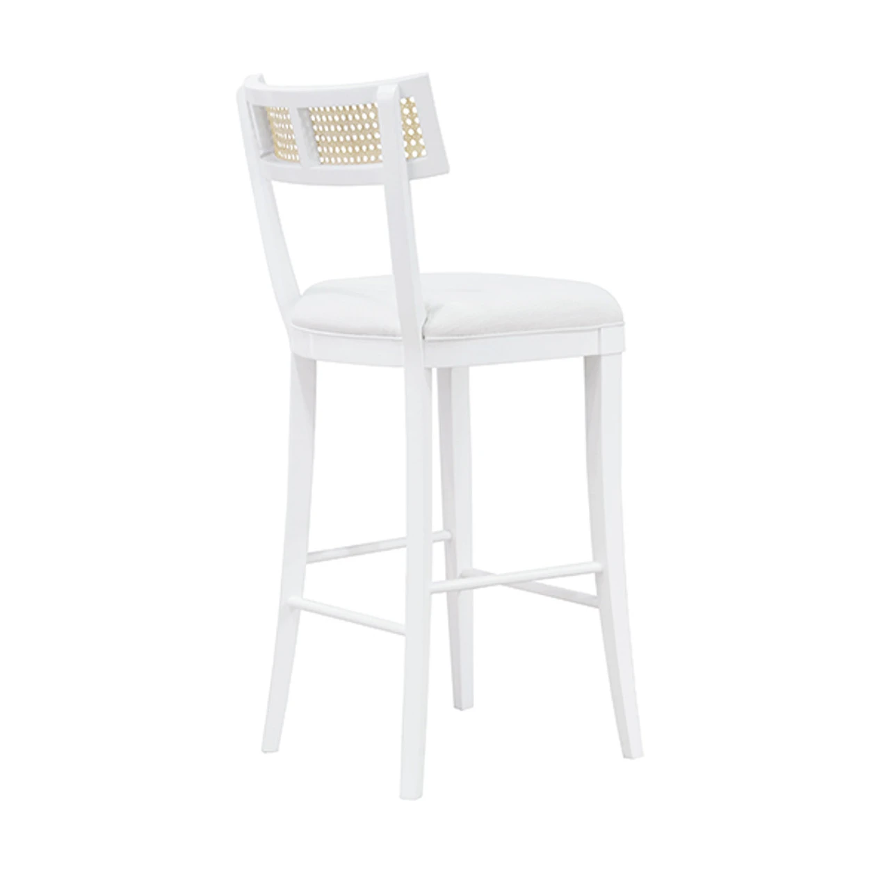 Enjoy the Klismos Bar Stool – Cane Detail – Matte White Lacquer in your home today!