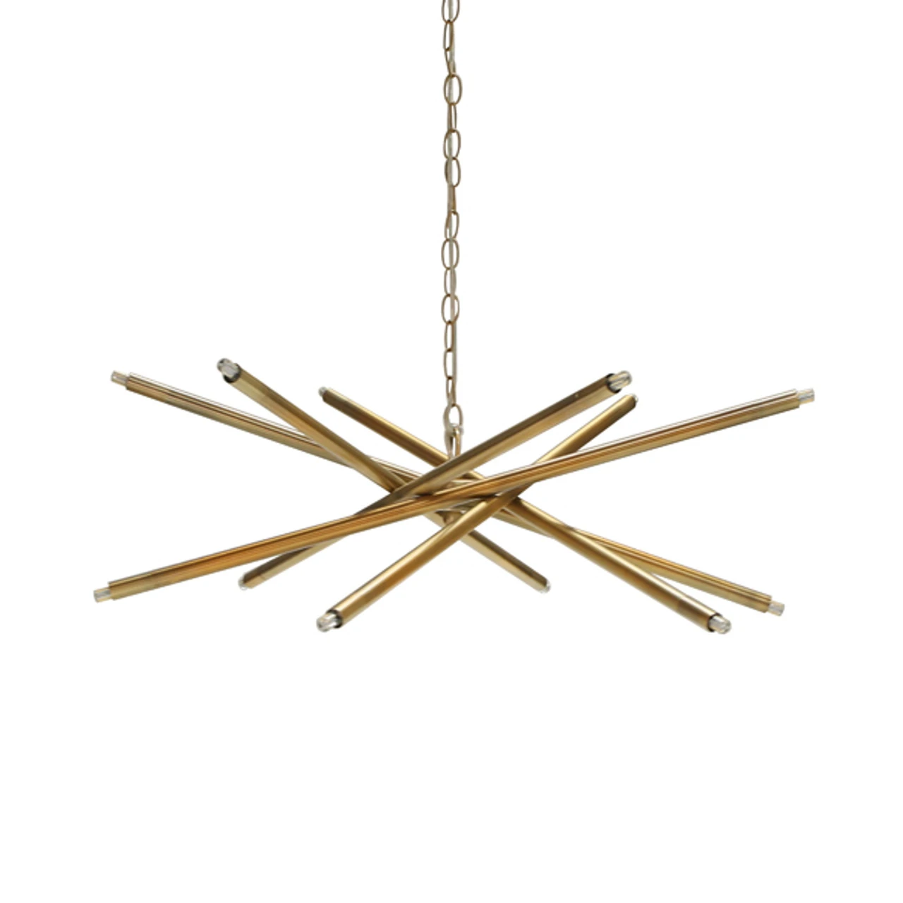 Enjoy the Modern Twelve Light Chandelier – Antique Brass in your home today! A consummate designer favorite, our interstellar, Sputnik style chandelier features perfectly-balanced, intersecting rods finished in elegant antique brass. Exposed lamping provides a warm, decorative ambiance for a harmonius interplay of bold form and sensible function. The iconic Luisa chandelier offers a wow factor like no other!