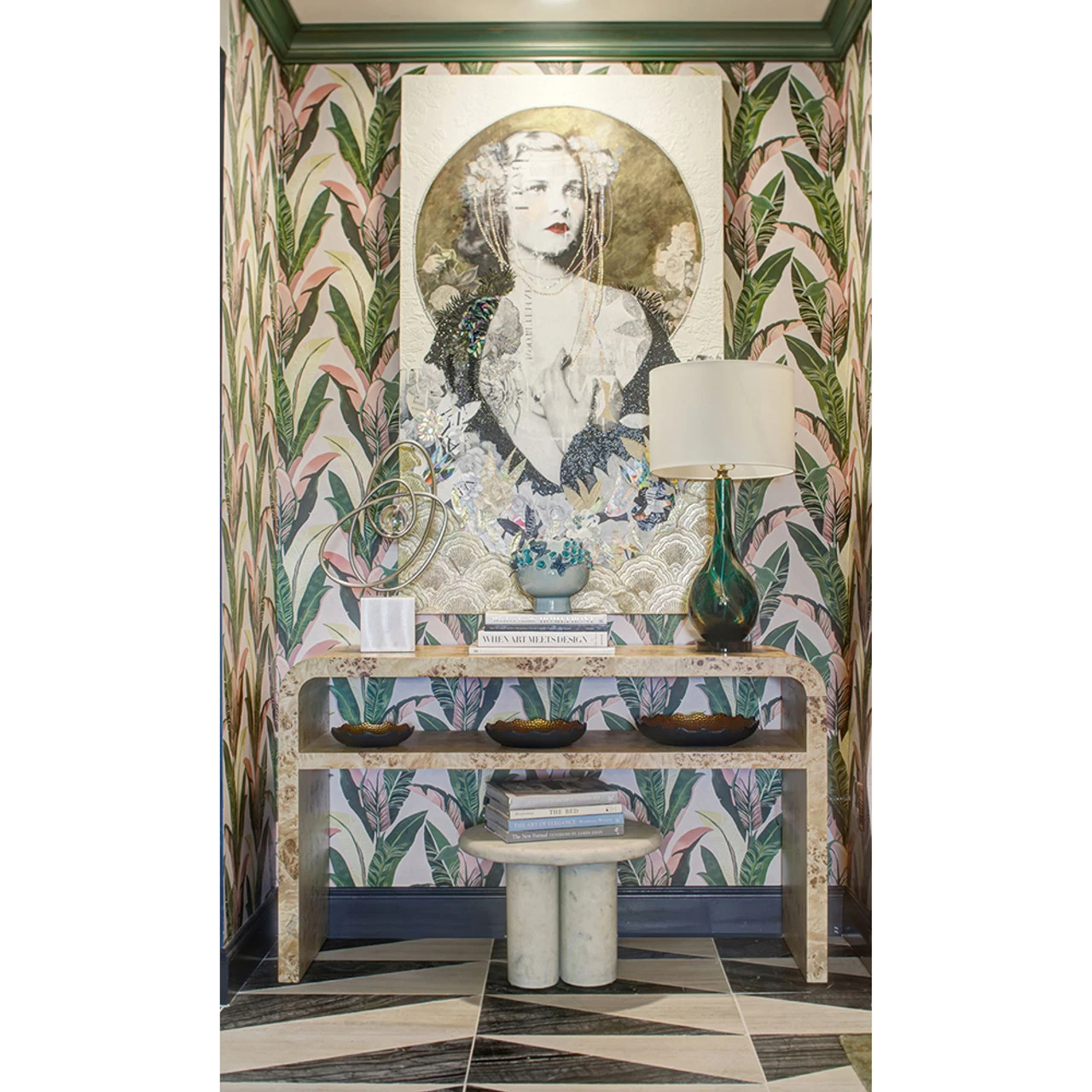 Enjoy the Waterfall Edge Two Tier Console Table – Burl Wood in your home today! Our mid-century modern, waterfall console table stands out in a crowd. Arcing silhouette and rich, book-matched burl veneer speak to one-of-a-kind, old world craftsmanship. Shelf provides additional stability and storage. As a dramatic centerpiece, Marshall sets the tone for a luxurious, high style living space.