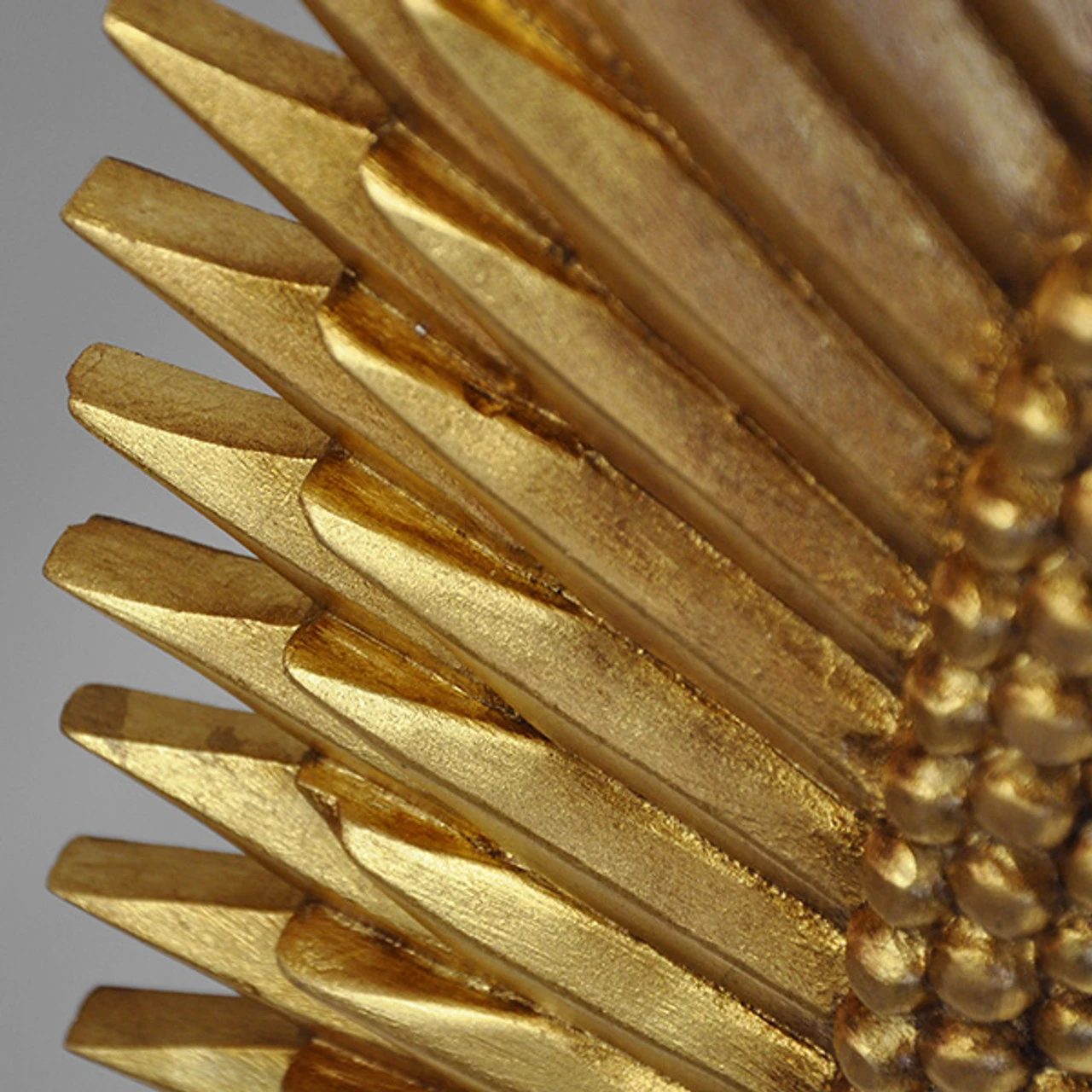 Enjoy the Oval Starburst Mirror – Gold Leaf in your home today! Let Rita grace your walls with spectacular pinache. Oval mirror hand-finished in gold leaf with exquisite starburst and beaded detailing. Like jewelry for your walls!