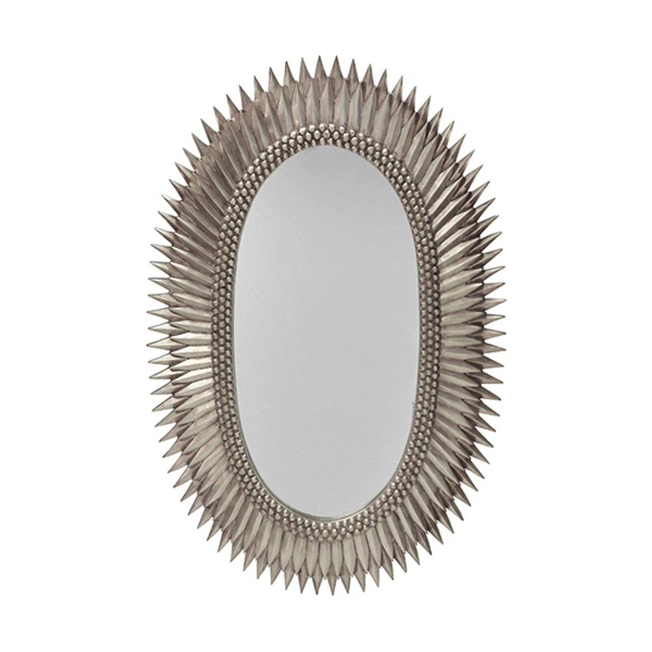 Enjoy the Oval Starburst Mirror – Silver Leaf in your home today! Let Rita grace your walls with spectacular pinache. Oval mirror hand-finished in silver leaf with exquisite starburst and beaded detailing. Like jewelry for your walls!
