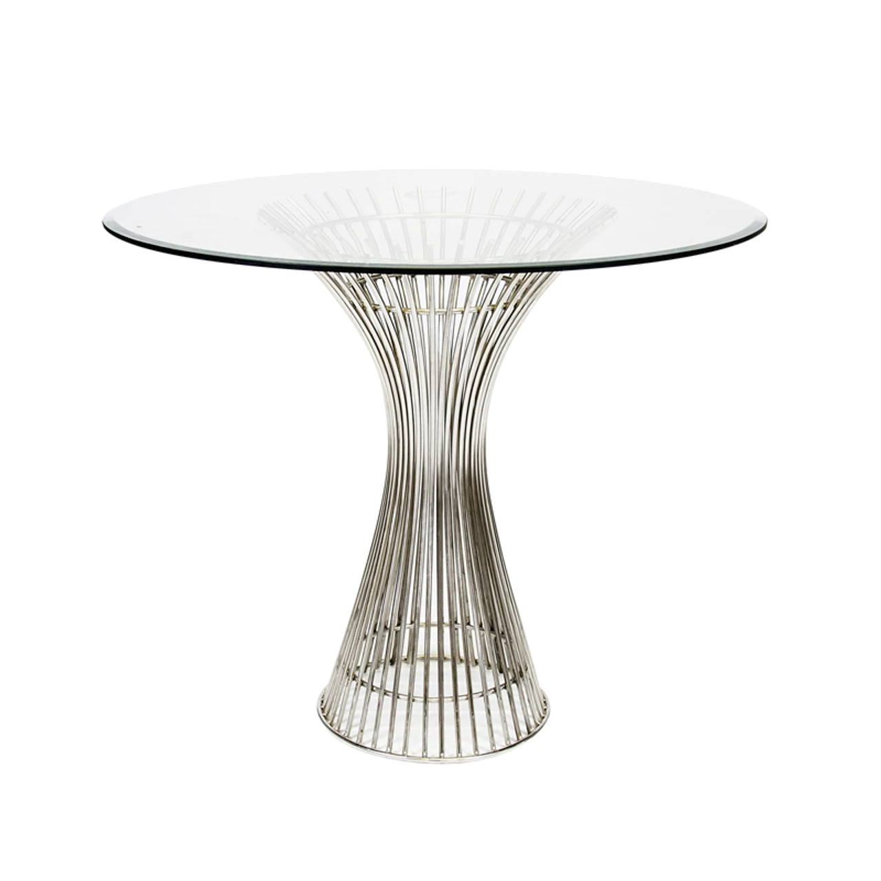Enjoy the Polished Stainless Side Table 30″ Dia Top in your home today! Our round, cage style side table exudes sophistication and feminine grace. Sweeping iron spindles are crafted from stainless steel for a sleek, modern profile. The eye catching base sits beneath a round, beveled glass top, so you can appreciate this glamorous silhouette from all angles. Curvaceous, clean, and comely, Powell is truly sublime.