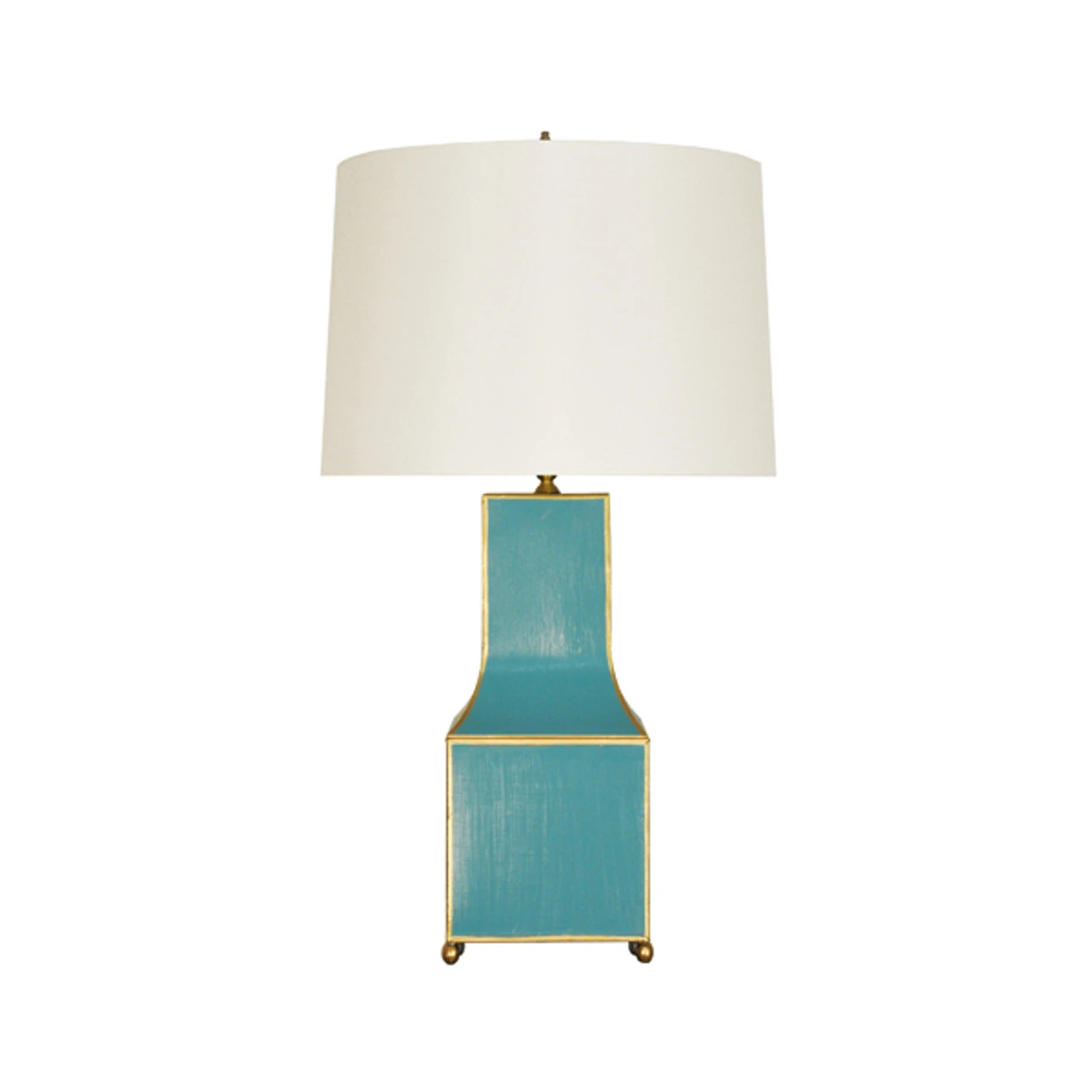 Enjoy the Handpainted Pagoda Table Lamp – Turquoise – Gold Trim in your home today! This incomparable table lamp is a modern take on a timeless classic. The inspired Pagoda-style base in hand-painted turquoise is accented with gleaming gold edges and appears to float atop a four leg base. Topped with a crisp cream silk shade, Renata will certainly brighten any room. *Customize in any color from the Benjamin Moore paint deck.