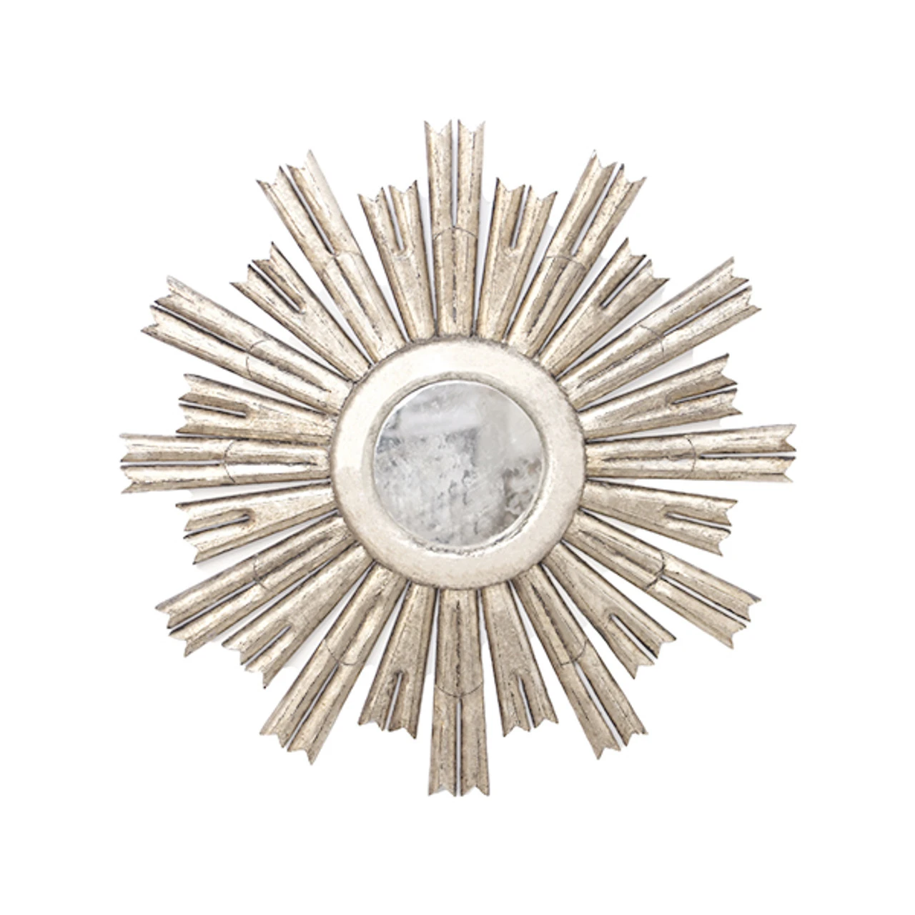 Enjoy the Starburst Slvr Lf Ant Mir in your home today! Inspired by the iconic emblem of the French sun king Louis XIV, our Rinaldo sunburst mirror is at home in classic as well as modern interiors. Handcarved with a hand-finished champagne silver leaf finish and antique mirror inset.
