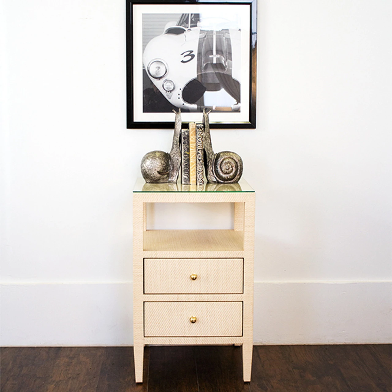 Materials: Hardwood Solids, Mdf, Grasscloth, Metal, And Glass