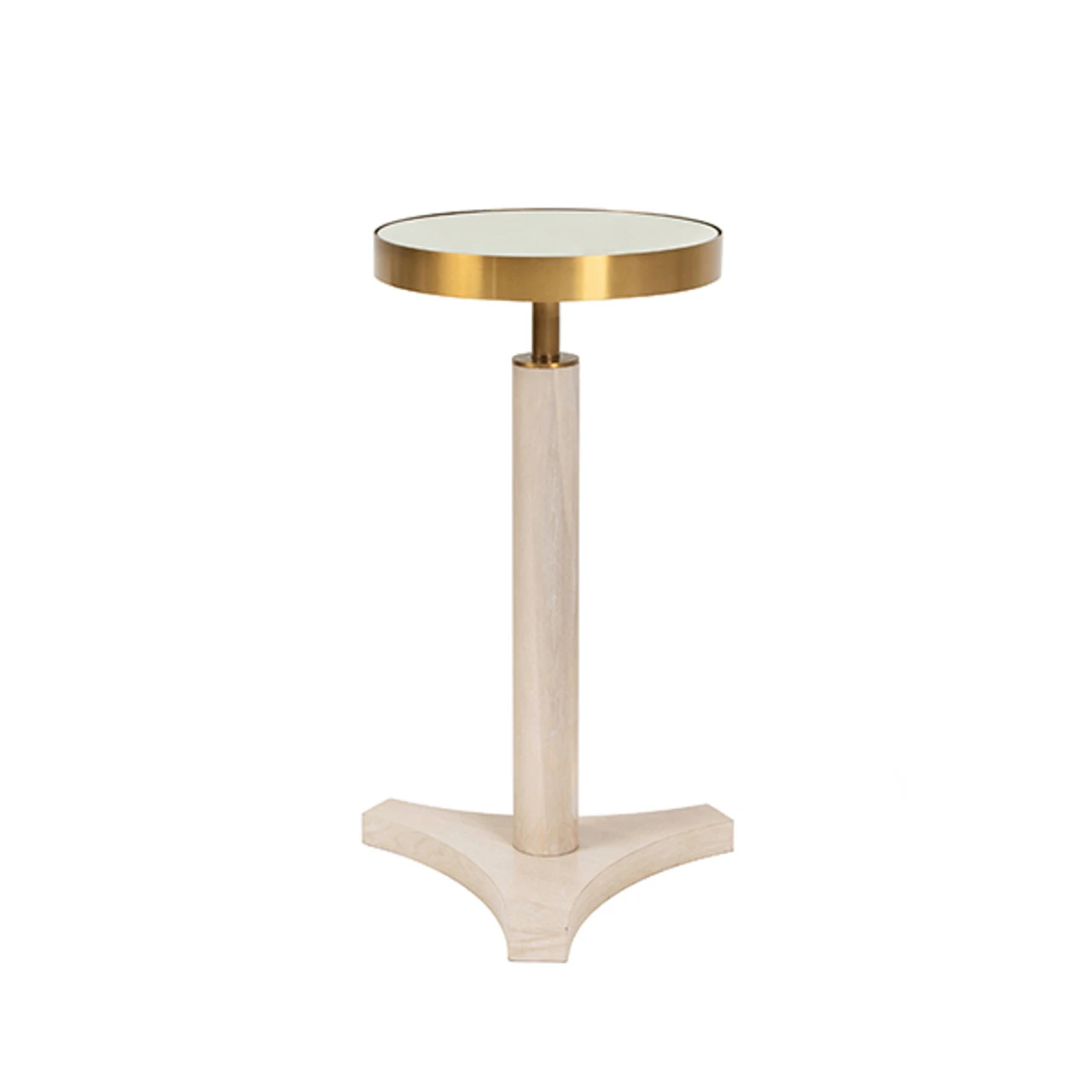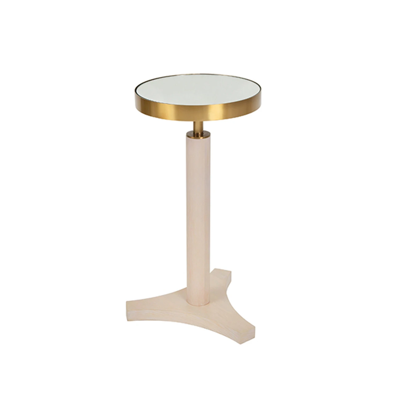 Enjoy the Round Cigar Table – Antique Brass Detail And Mirror Top – Cerused Oak in your home today!