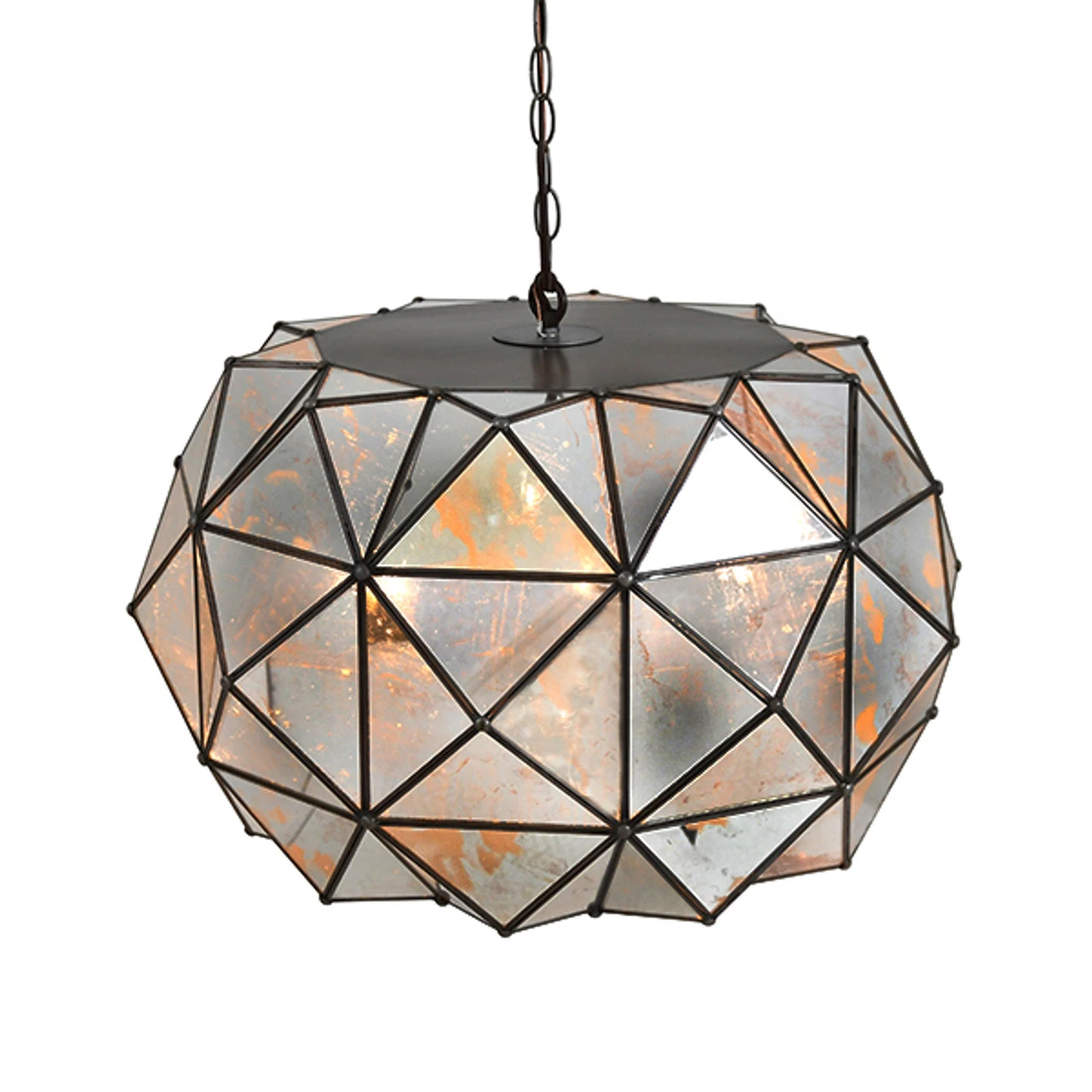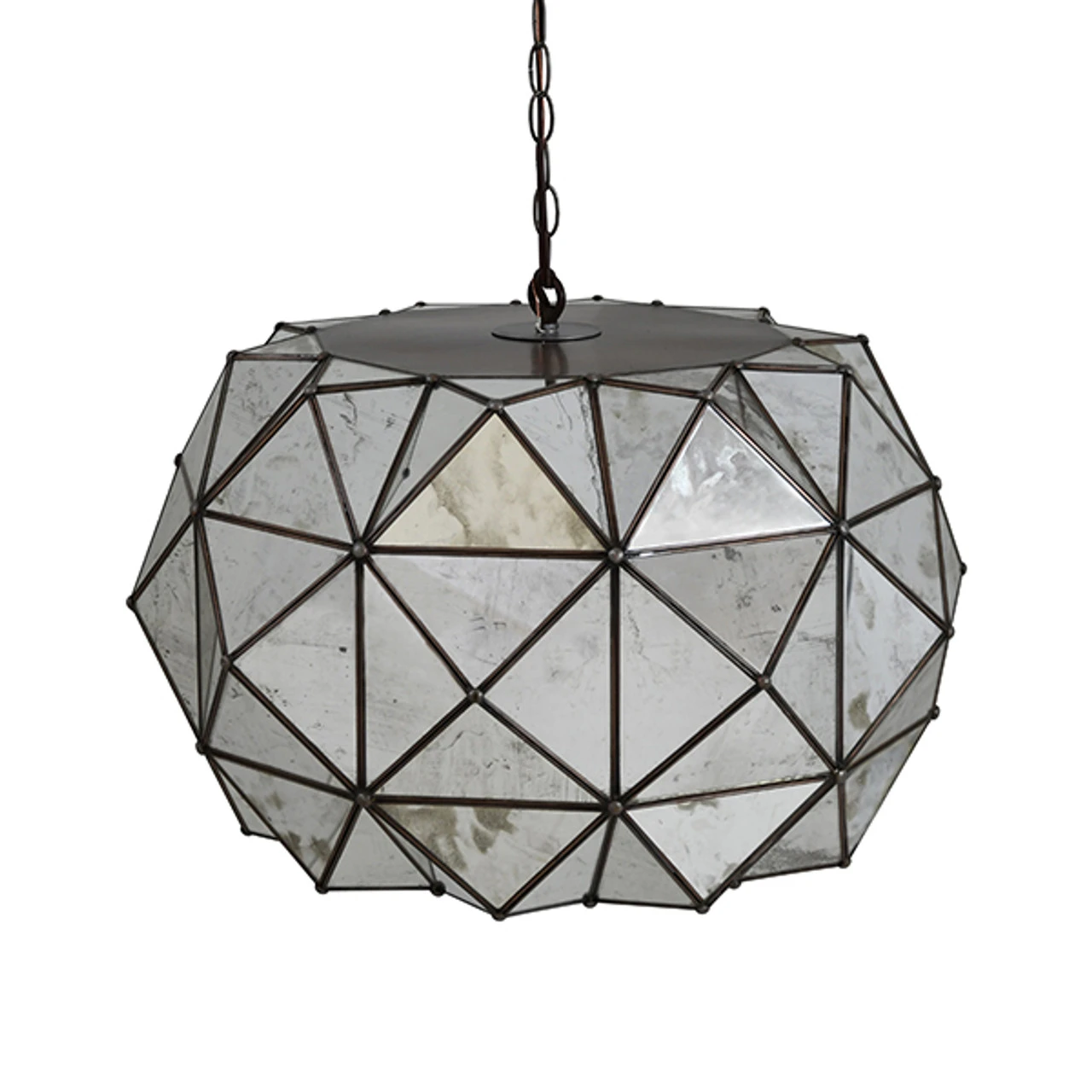 Enjoy the Ant Mirror Ufo Pendant W Interior 3-Light Cluster in your home today! The distinctive shape of our Rozz pendant is defined by antiqued edge glass facets that sparkle and reflect the light creating a bold, eye-catching graphic statement. Stunning day or night, Rozz looks great hung solo in an entry way or paired together above your favorite Worlds Away console.