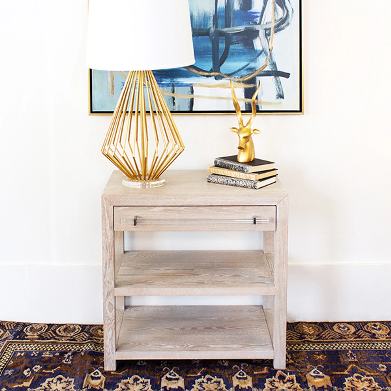 Enjoy the Side Table – Cerused Oak/Includes Brass & Nickel Hrdwr Options W Acrylic Rod in your home today! Old world charm meets our modern lifestyle. Featuring a timeless natural cerused oak finish and on-trend acrylic and nickel hardware, the Garbo one drawer side table has it all.