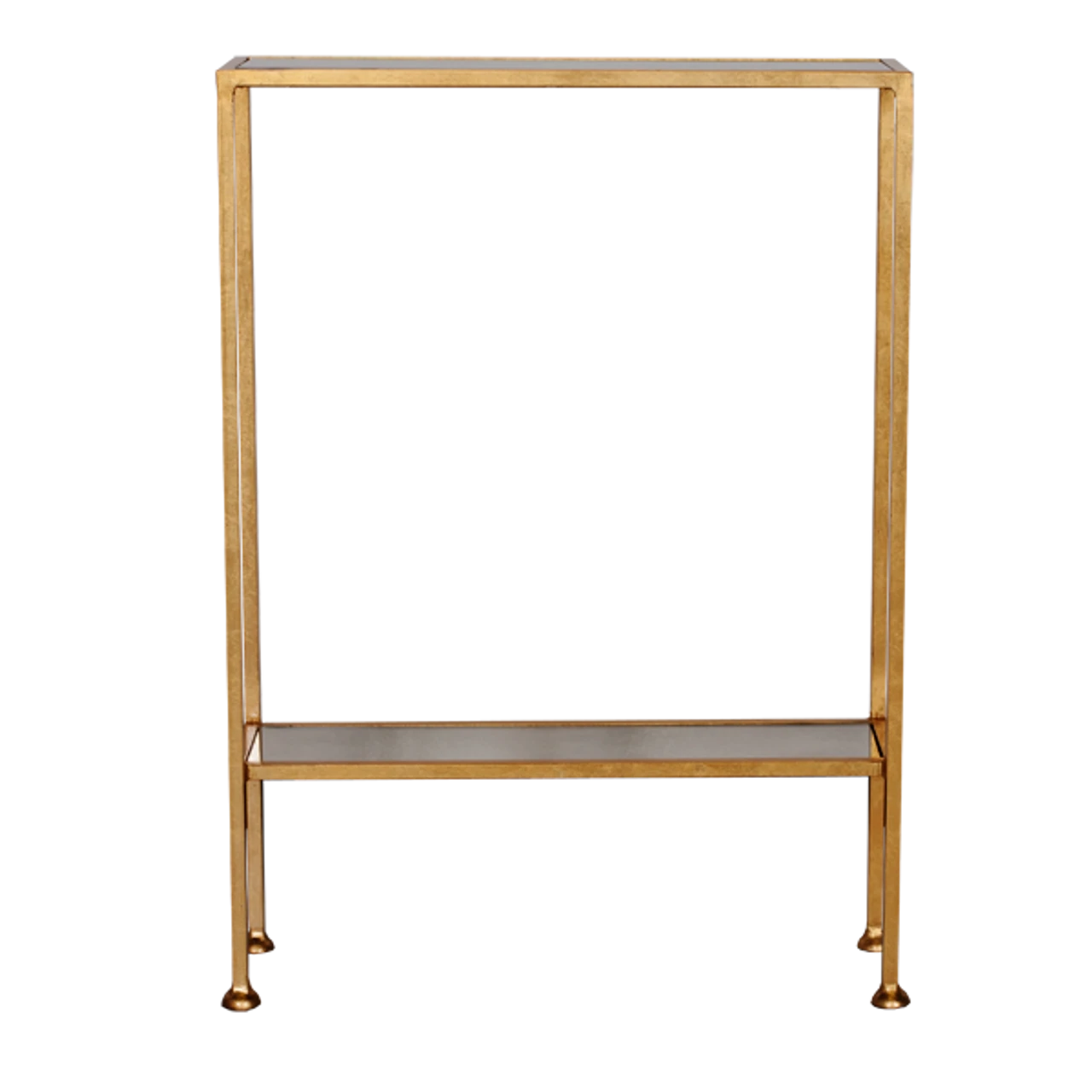 Enjoy the Sm Gold Lf Shelf W Mir in your home today! Classically beautiful with a hint of glam, our rectangular, minimalist lamp table is the perfect solution for deep, narrow spaces. Two-tier iron frame, finished with luxurious gold leaf, pairs perfectly with inset antique mirror top and shelf. An ideal companion for your settee or love seat.