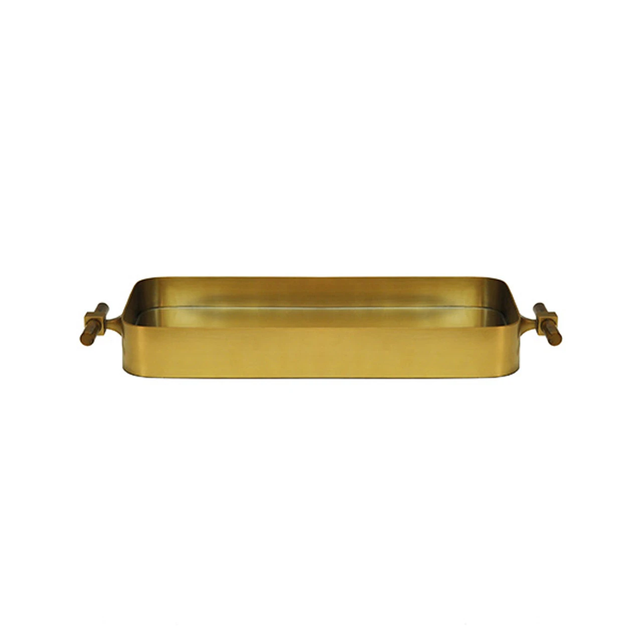 Enjoy the Small Rounded Edge Tray – Antique Brass & Inset Mirror in your home today! Our exquisite, rounded edge brass tray is perfect for all your tabletop treasures! Finished in on-trend antique brass with horn handles and an inset mirror, Klein brings a distinctive, luminous style to any display surface.