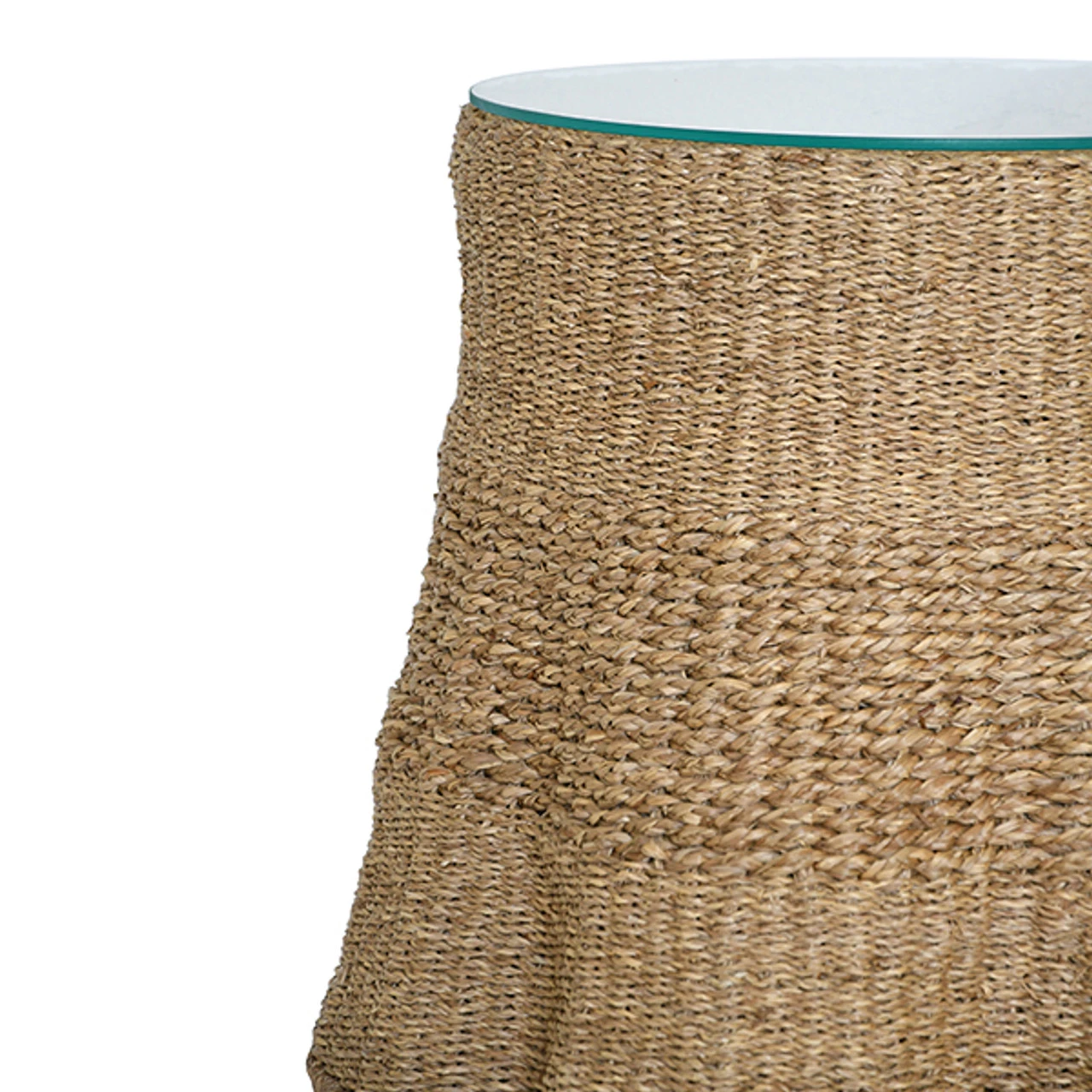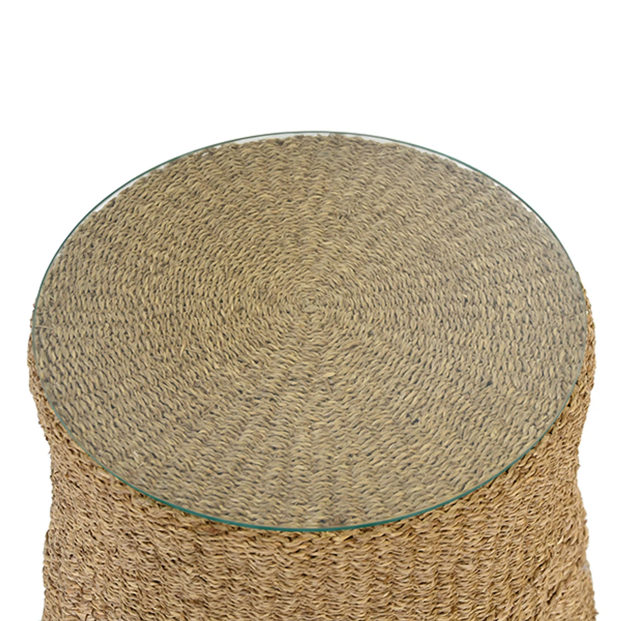 Enjoy the Small Scalloped Base Seagrass Table – Glass Top in your home today! Add an element of seaside charm to your home with our small Misha side table. The scalloped woven seagrass base and glass top will transport you to an island paradise. Simple and versatile, this piece is a natural wonder for any room.