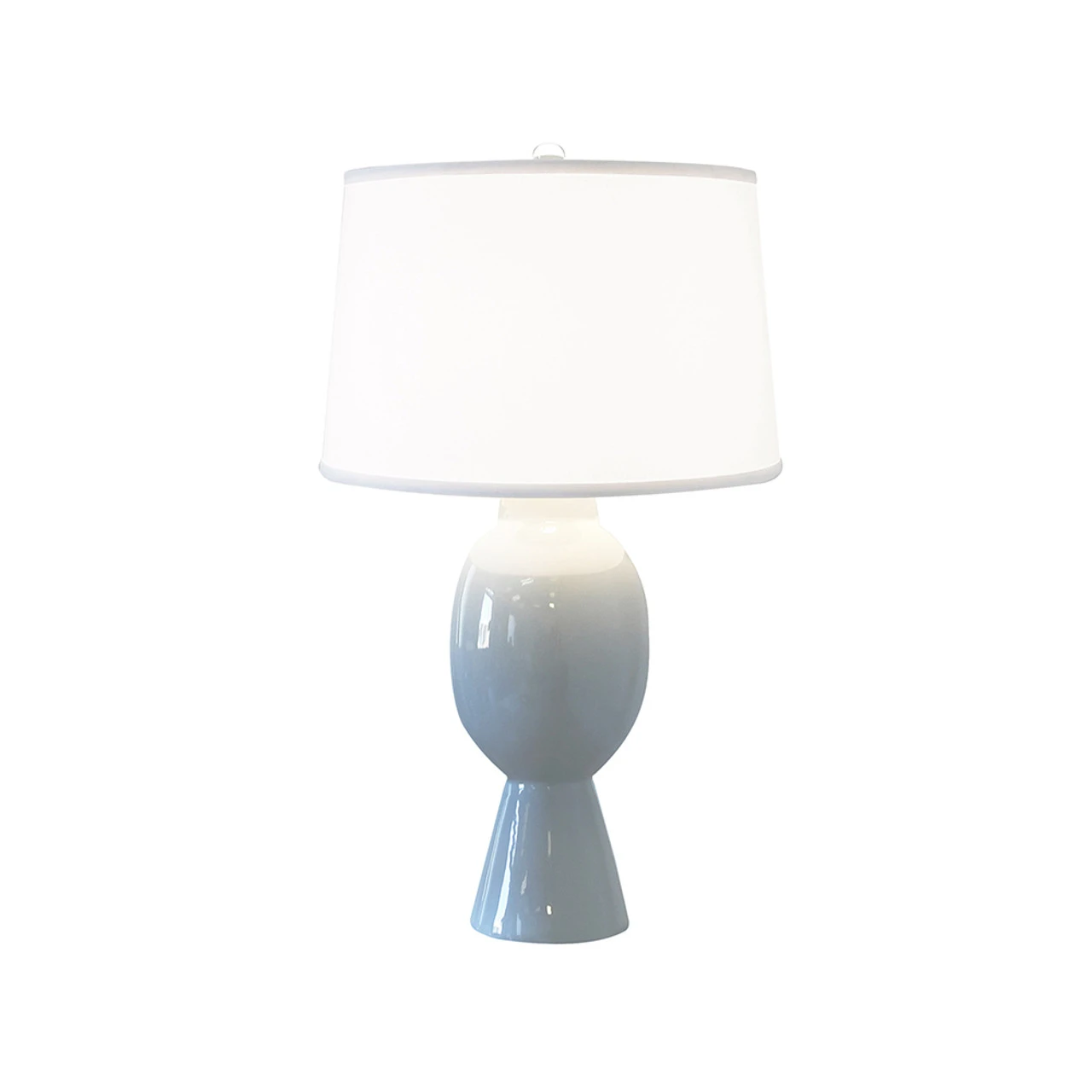Enjoy the Tall Bulb Shape Ceramic Table Lamp – White Linen Shade – Light Blue in your home today!