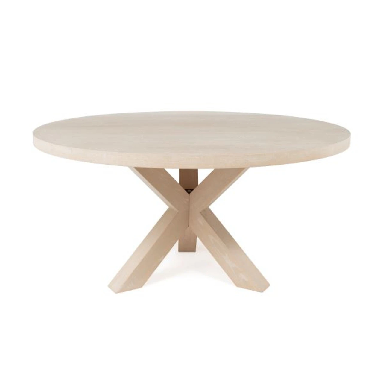 Enjoy the Tripod Base Round Dining Table – Cerused Oak in your home today! Our Greer round dining table makes the most of its modern, minimalist shape. The tripod wood base offers a handsome, sturdy foundation, and the natural cerused finish amplifies striking, textured oak grain. Greer comfortably seats six.