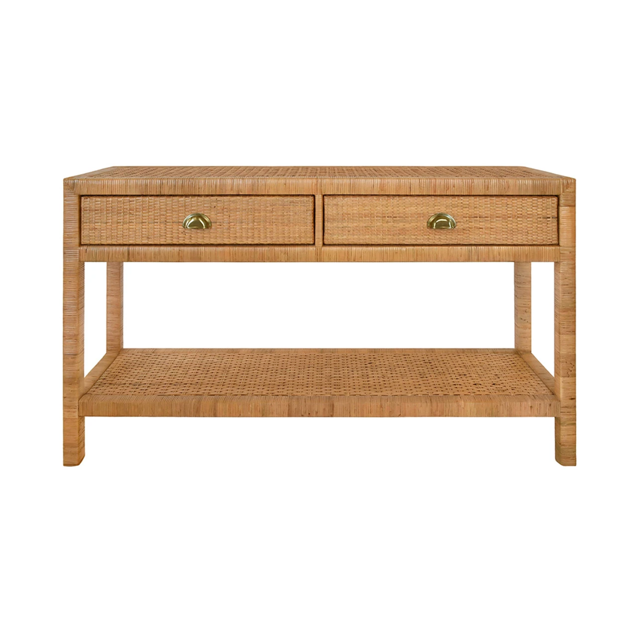 Enjoy the Two Drawer Console – Natural Rattan – Brushed Brass Cup Pulls in your home today!