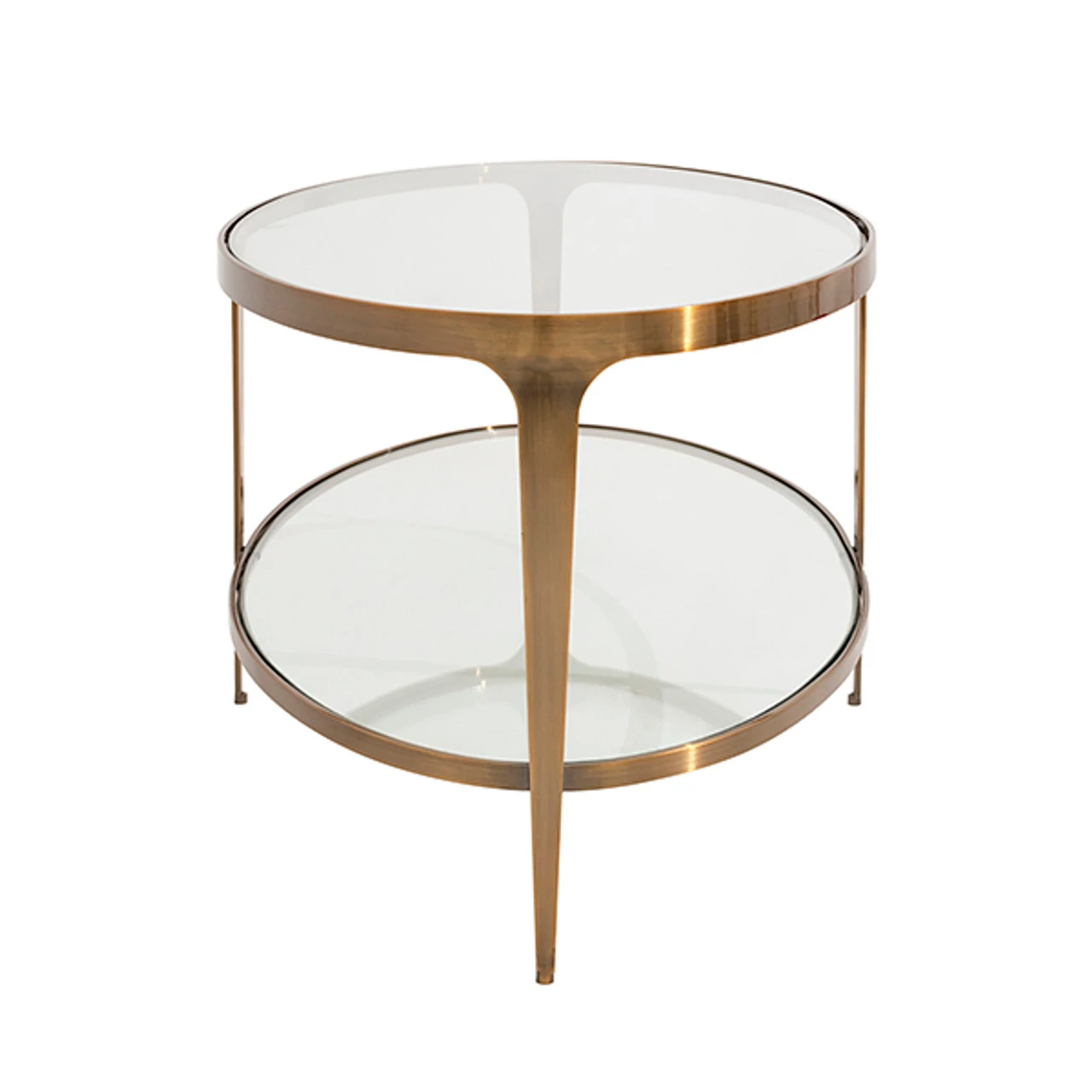 Enjoy the Two Tier Glass Top Oval Coffee Table – Antique Brass in your home today!