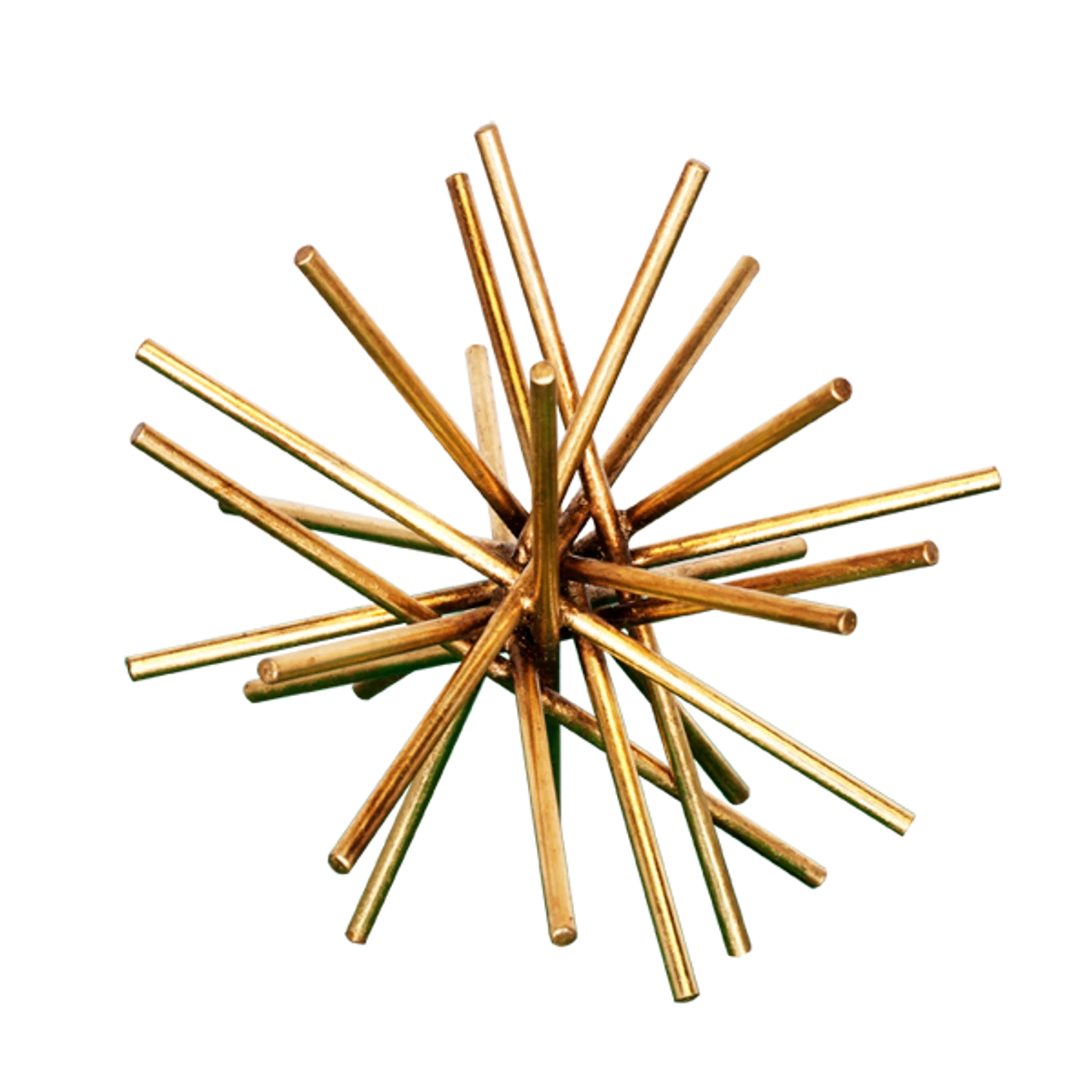 Enjoy the 9″ Iron Asterisk – Gold Leaf in your home today! Just like the darling of the sea, our popular Urchin sculpture blooms with a distinctive graphic expression, perfect for your tabletop or shelf display. Asterisk-like iron rods are hand finished in gold leaf to create this unique 9″ diameter objet d’art.