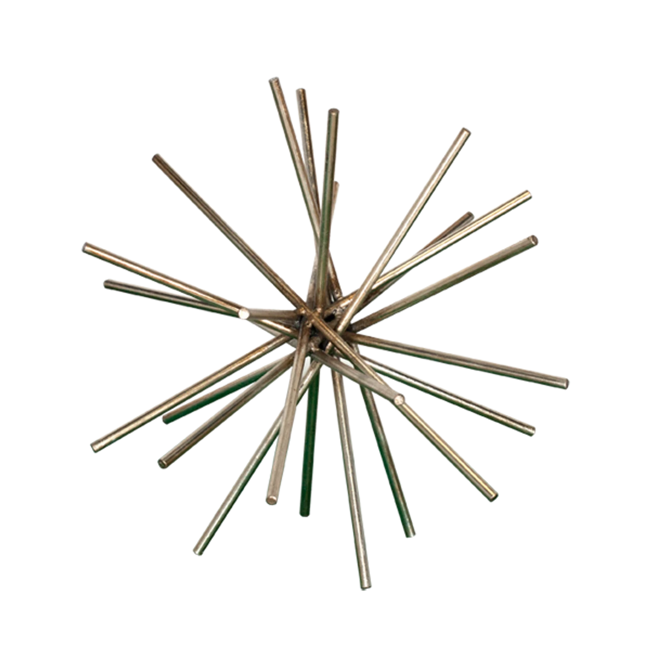 Enjoy the 9″ Iron Asterisk – Silver Leaf in your home today! Just like the darling of the sea, our popular Urchin sculpture blooms with a distinctive graphic expression, perfect for your tabletop or shelf display. Asterisk-like iron rods are hand finished in silver leaf to create this unique 9″ diameter objet d’art.