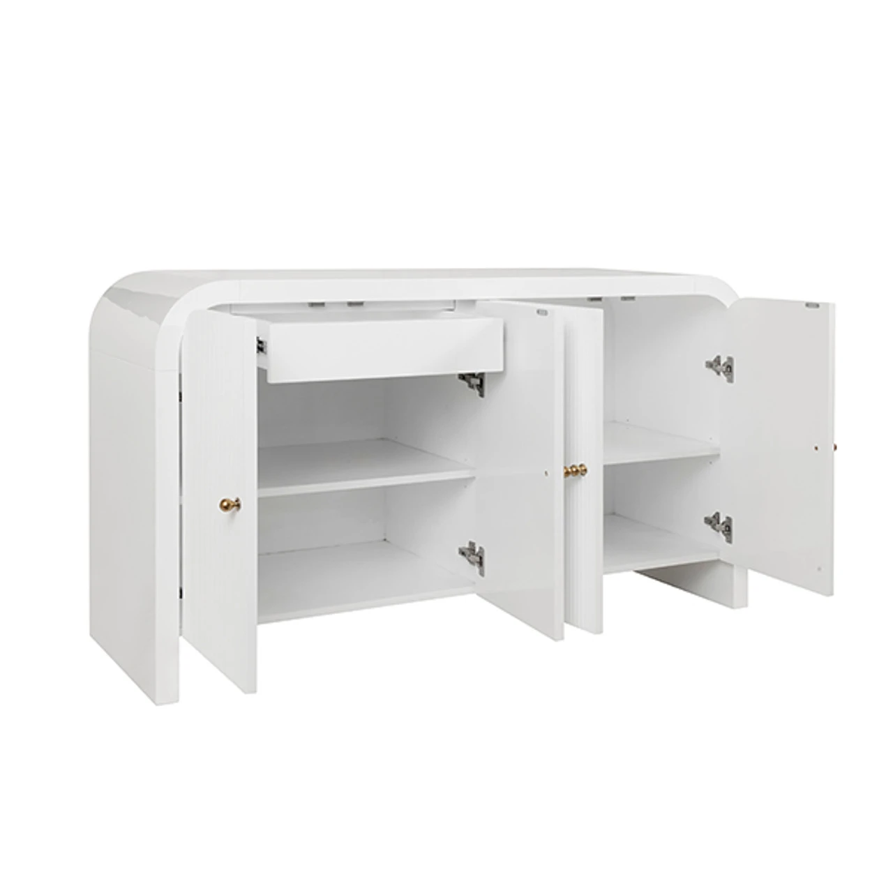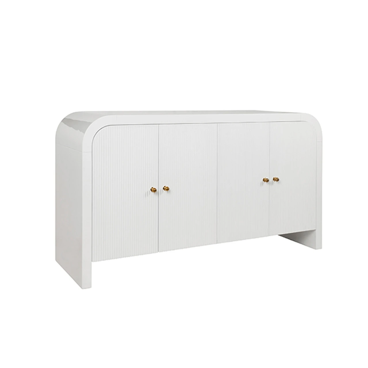 Enjoy the Waterfall Edge Buffet – Fluted Door Front – White Glossy Lacquer in your home today!