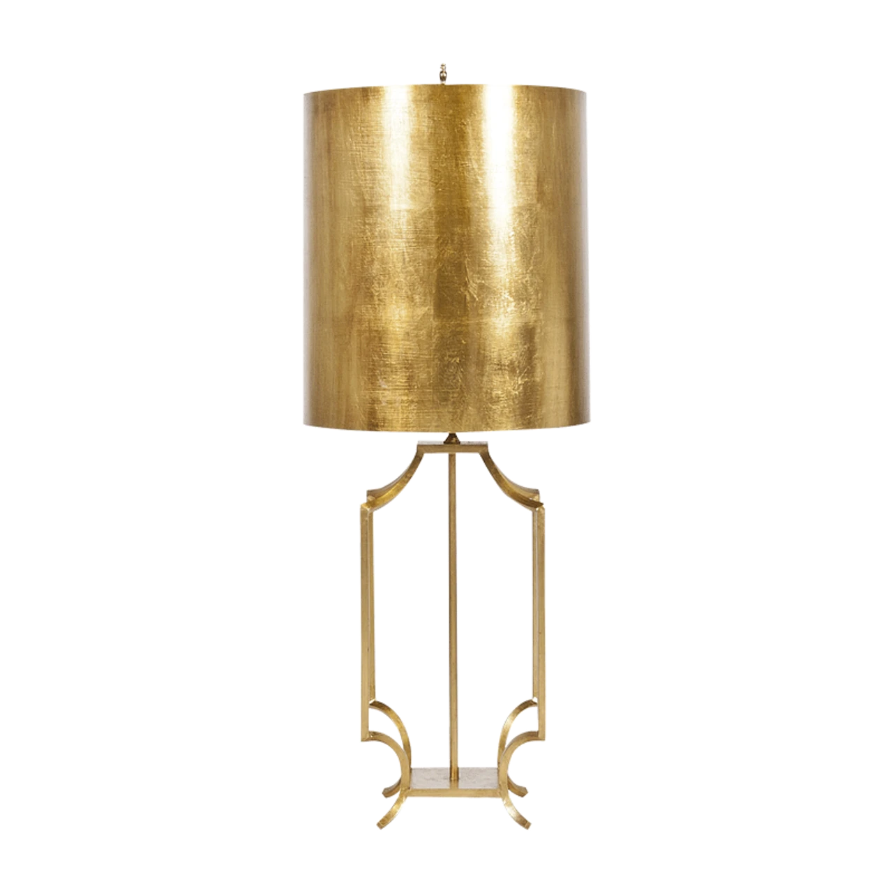 Enjoy the Gld Lf Iron Lamp Base W. Gold Lf Drum Shade in your home today! Our Windham table lamp is defined by delicate and refined lines, making it an accessory you’ll treasure for generations. Gorgeous in any context, but especially suited to enhance Hollywood Regency and Moderne interiors. Hand applied gold leaf finish with a coordinating gold leaf metal drum shade. Incredibly chic and timeless.